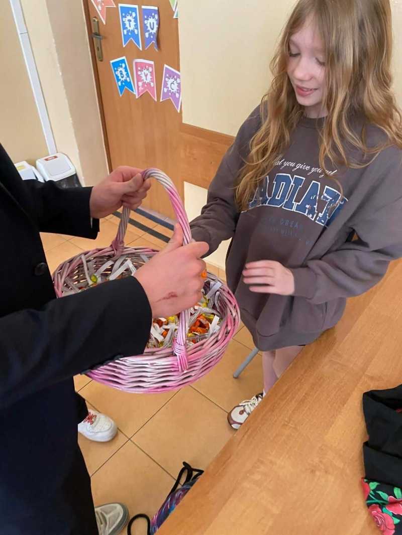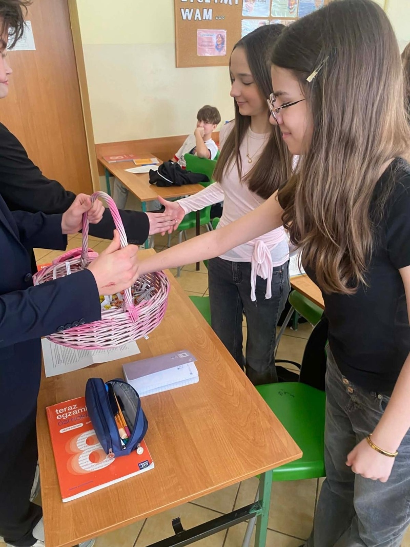 Po jej zakończeniu uczniowie wyruszyli do szkolnych sal, gdzie złożyli życzenia wszystkim Paniom i Koleżankom. Nie zabrakło również słodkich niespodzianek, które wywołały wiele uśmiechów i sprawiły, że w całej szkole zapanowała wyjątkowo miła, świąteczna atmosfera.