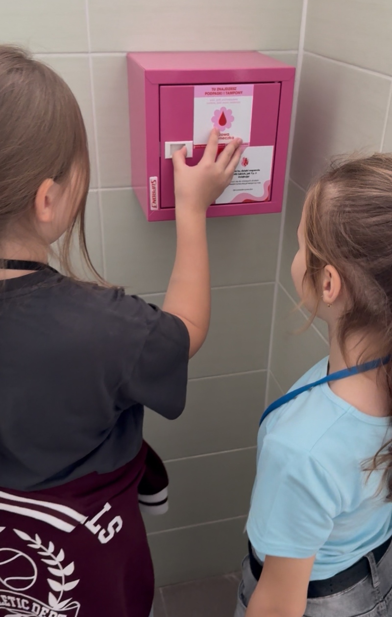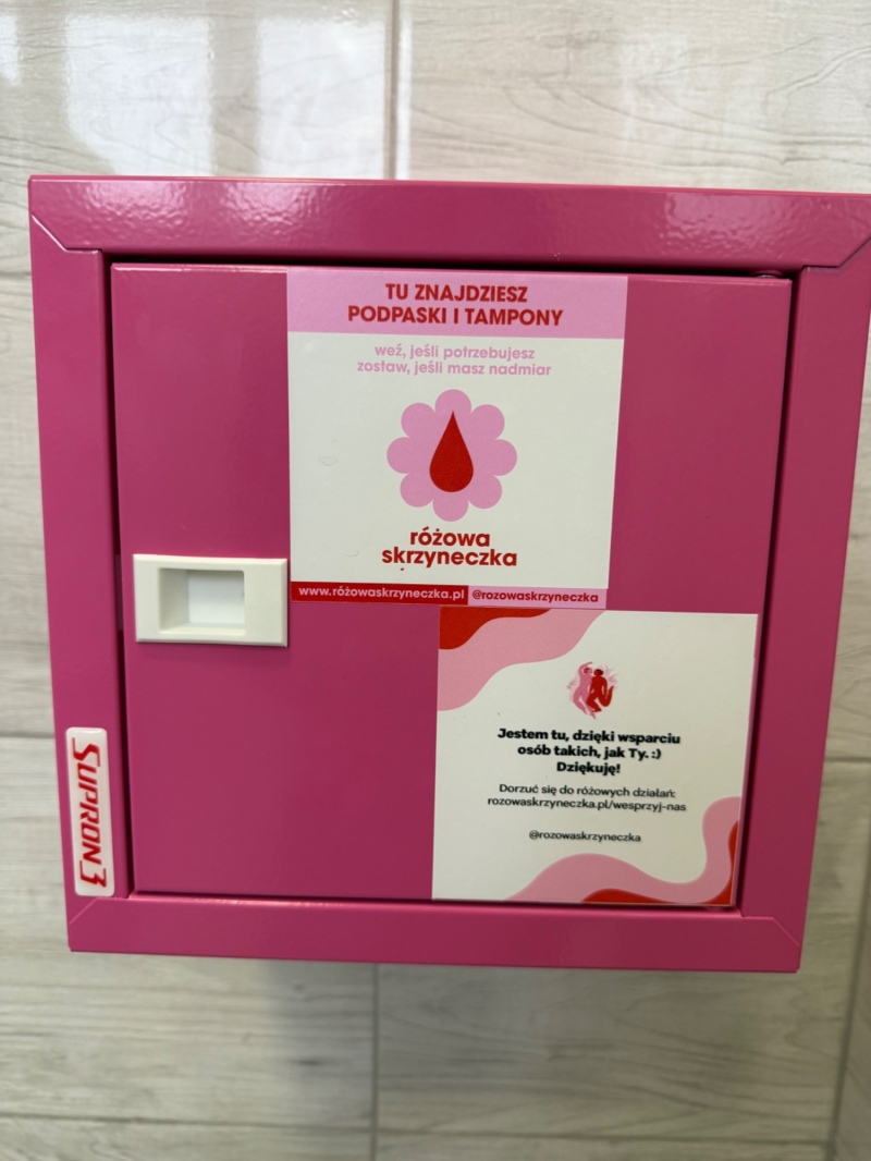 ada Rodziców ufundowała w szkolnych toaletach różowe skrzynki wyposażone w bezpłatne środki higieny menstruacyjnej. Celem tej inicjatywy jest zapewnienie uczennicom komfortu, poczucia bezpieczeństwa oraz wsparcia w sytuacjach nagłych.