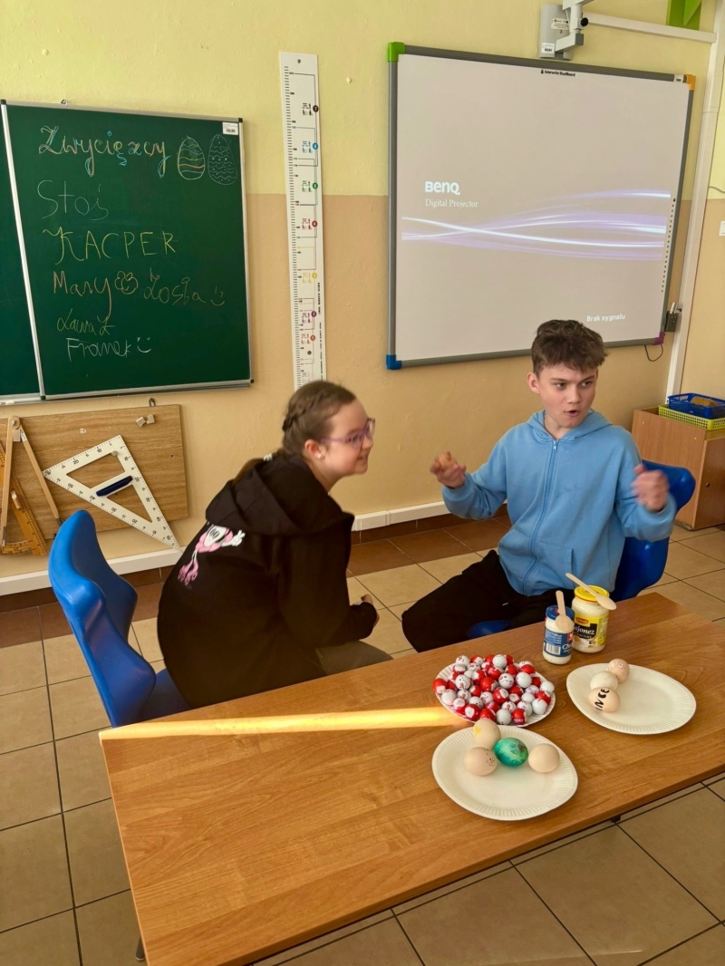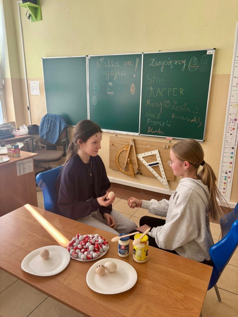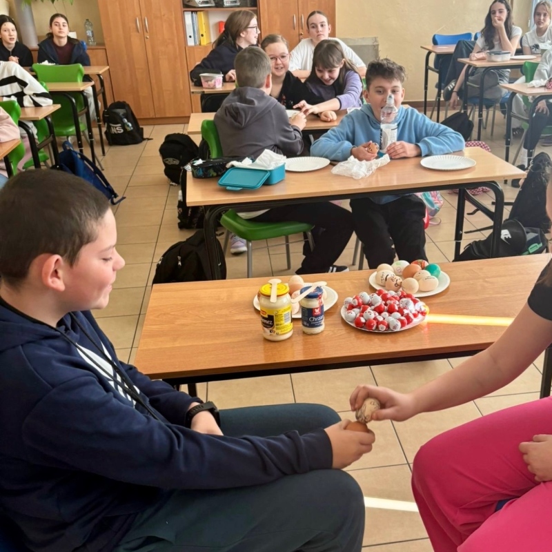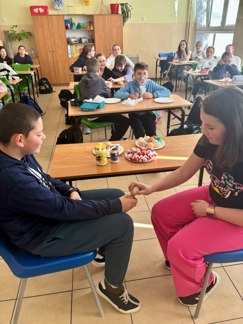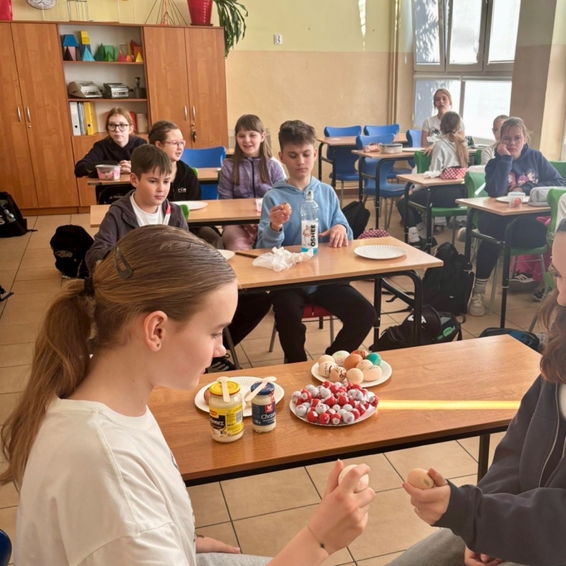 Temat dzisiejszej godziny wychowawczej w kl. 5a "Tradycje wielkanocne". Nie zabrakło walki na jajka, wykonania pisanek i tego co najprzyjemniejsze - zjedzenia jajek 🙂