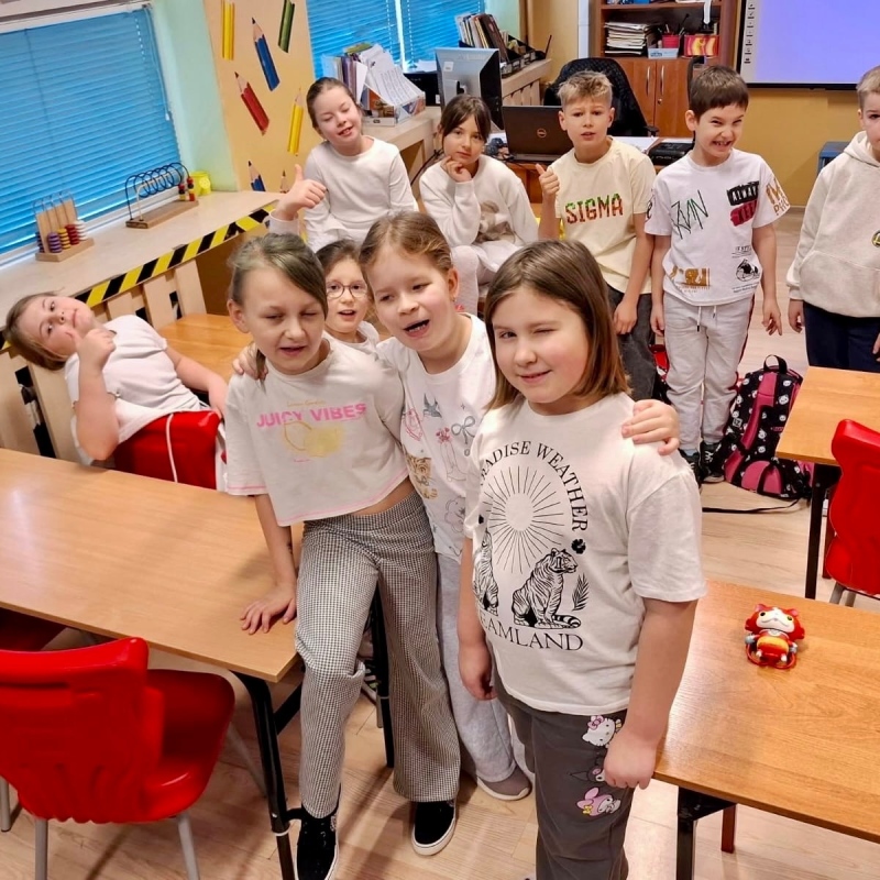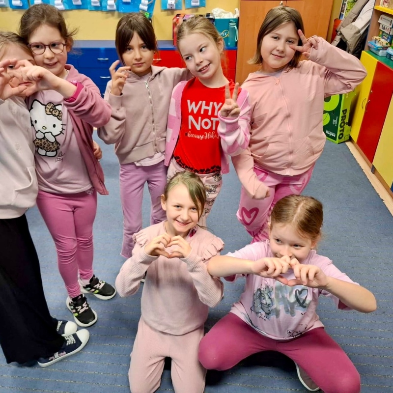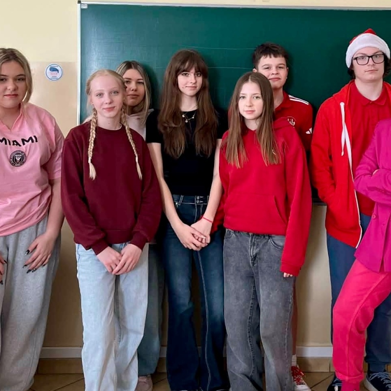 Każdego dnia obowiązywał inny kolor stroju. W poniedziałek korytarze zdominowała elegancka czerń. We wtorek zrobiło się świeżo i wiosennie – królowała zieleń. Środa upłynęła pod znakiem niebieskiego, który wprowadził spokojny, pogodny nastrój. W czwartek zrobiło się naprawdę barwnie – różowo-czerwone stylizacje dodawały wszystkim energii i uśmiechu. Tydzień zakończyliśmy w piątek w bieli, która symbolicznie podkreśliła wspólnotę i szkolną jedność.