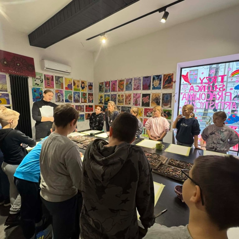 Klasa 3b uczestniczyła w warsztatach w pracowni plastycznej ,,Trzy Słońca”, rozwijające wyobraźnię, pomysłowość i uwagę. Dzieci poznały nowe techniki plastyczne. Prace były niezwykle twórcze i kreatywne ukazujące wiele talentów i zdolności naszych uczniów.
