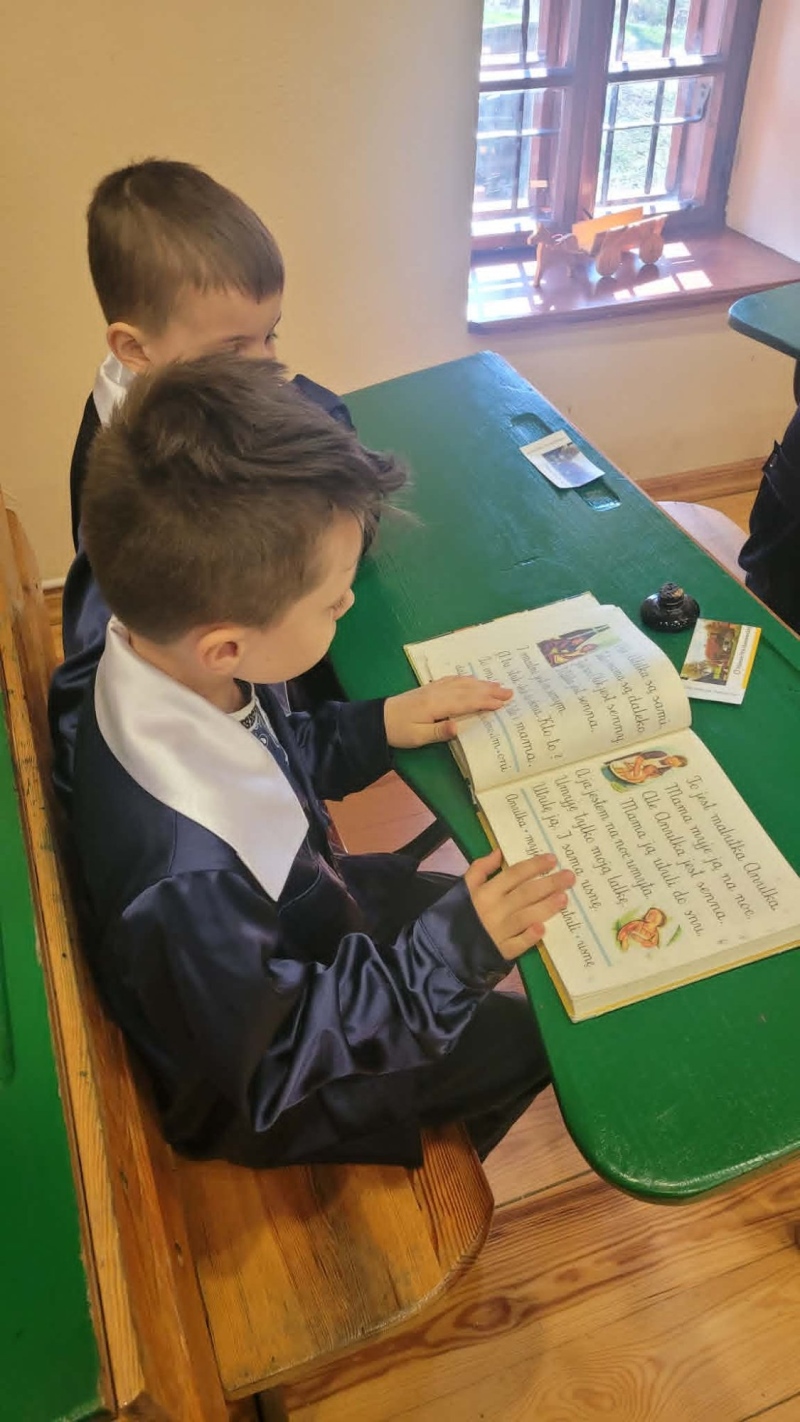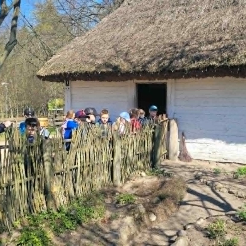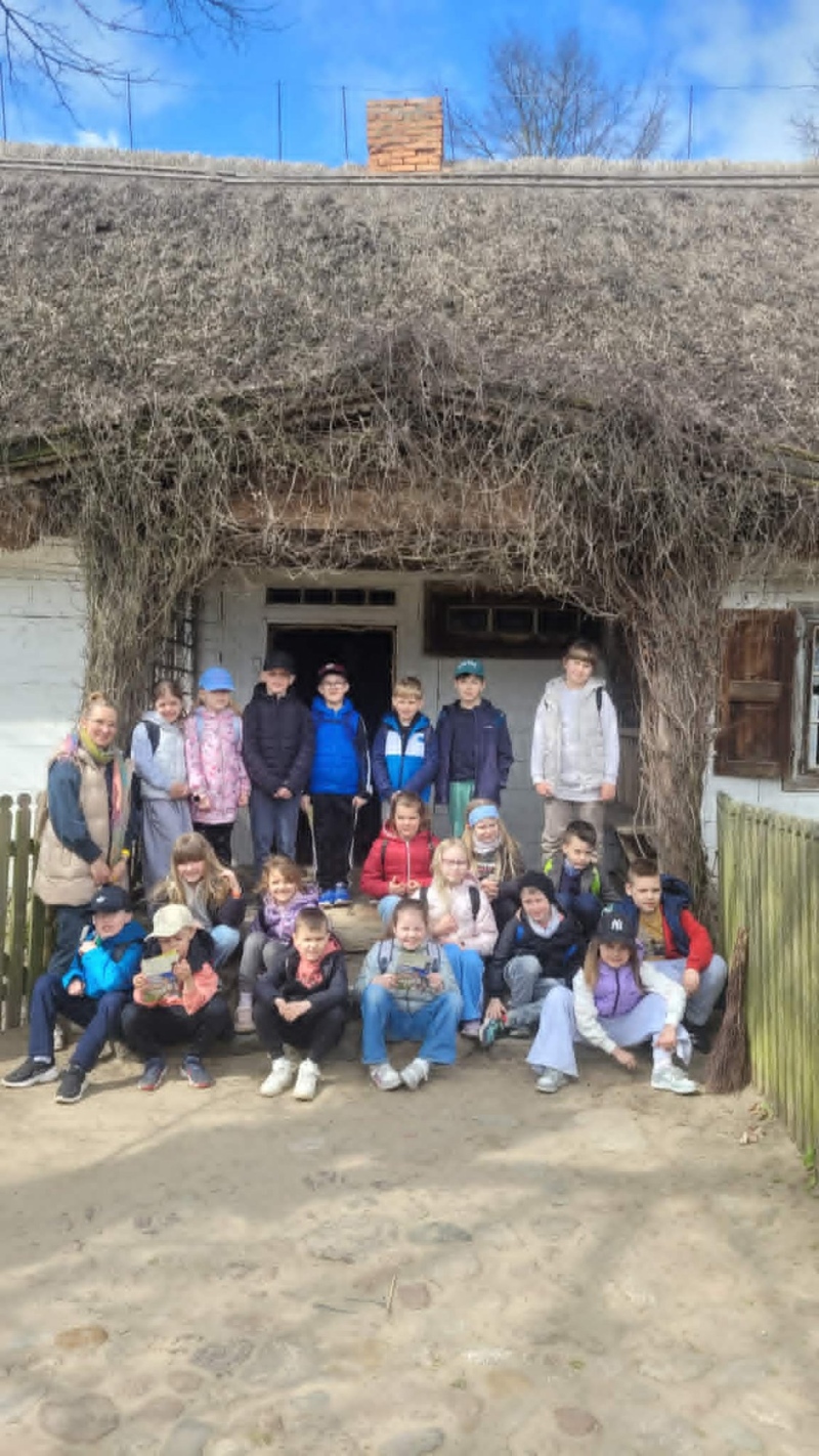 Podczas spaceru malowniczymi ścieżkami dzieci miały możliwość zobaczyć tradycyjne, drewniane chaty kryte strzechą, dawną szkołę, dom młynarza i sołtysa, a także zabytkowy kościół. Uczniowie poznali codzienne życie i pracę naszych przodków.