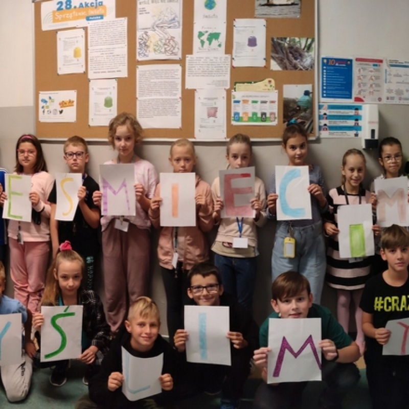 Na zdjęciu klasa 4d po zajęciach pod hasłem tegorocznej Akcji Sprzątania świata: „Myślę, więc nie śmiecę”.