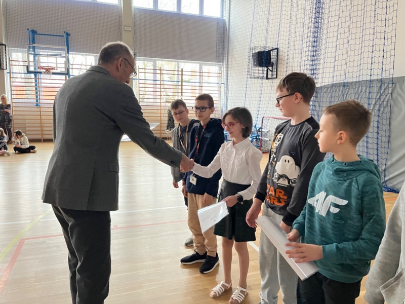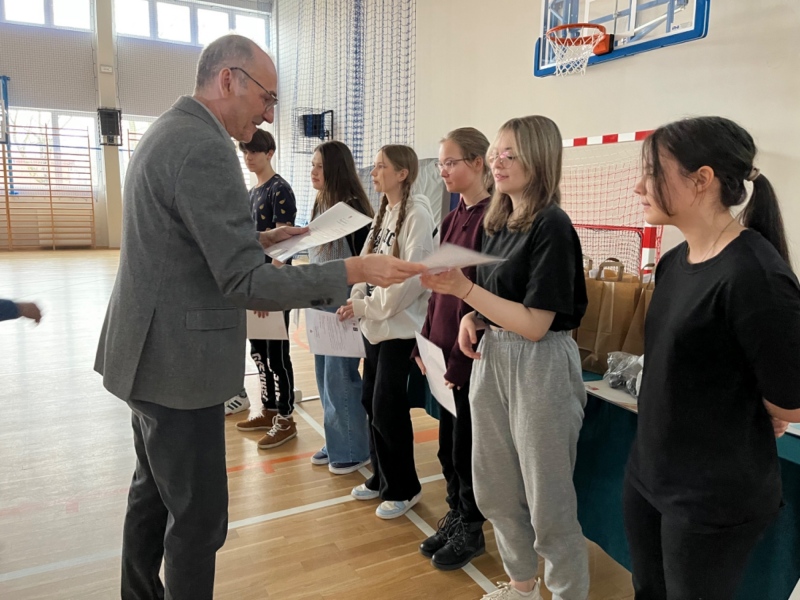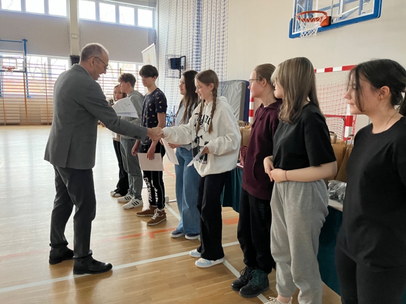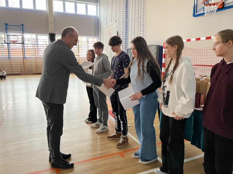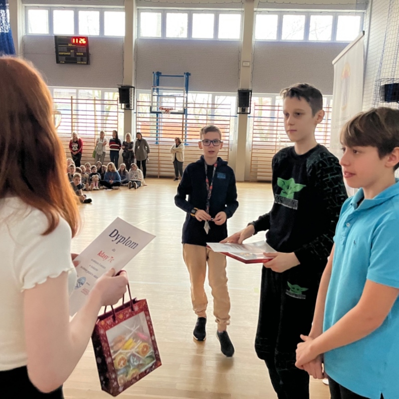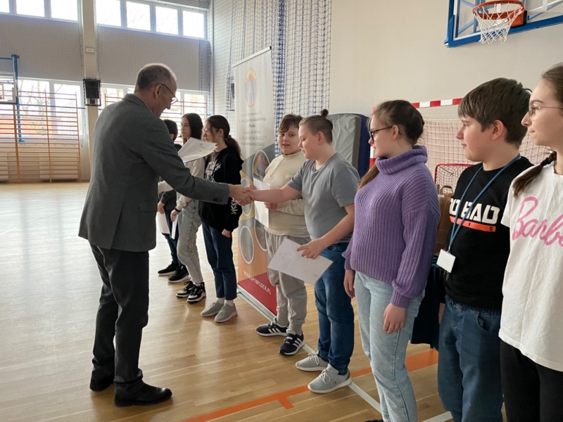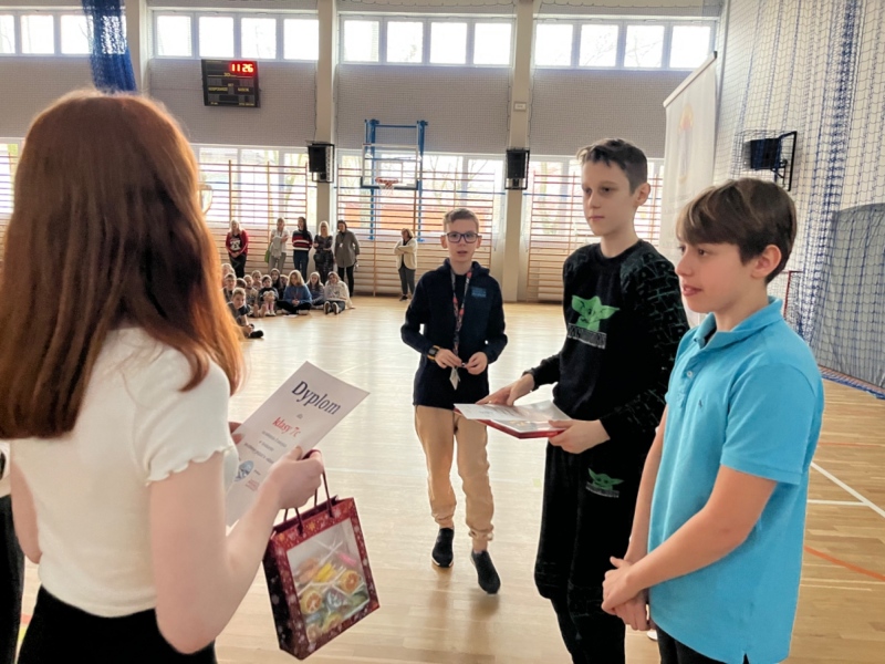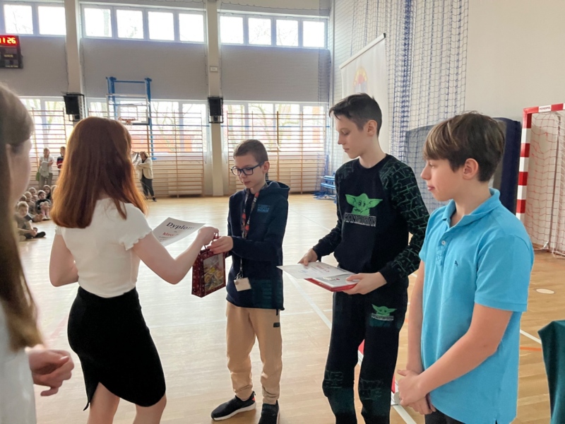 Gromkie brawa otrzymał także Nataniel Kołodziejski z klasy 8 b, który brał udział w etapie wojewódzkim konkursu przedmiotowego z języka niemieckiego i 2 marca w Warszawie walczył o tytuł laureata. 14 marca będziemy mocno trzymać kciuki za Weronikę Konczalską z klasy 8e, która także będzie konkurowała o tytuł laureatki w etapie wojewódzkim konkursu przedmiotowego z biologii.