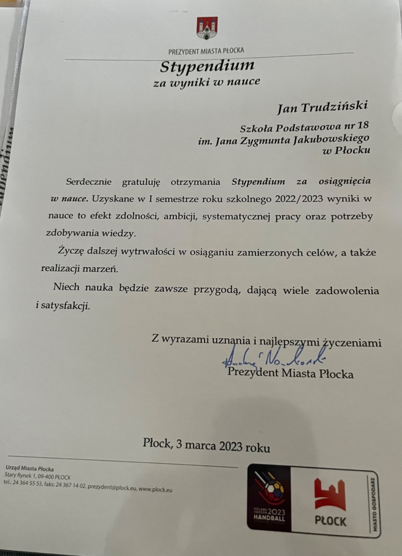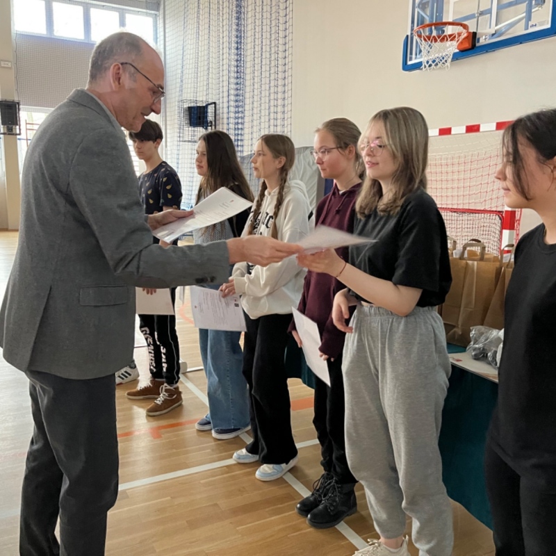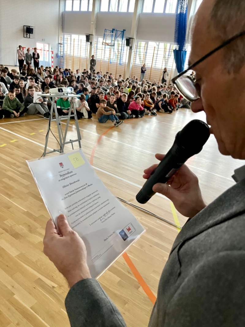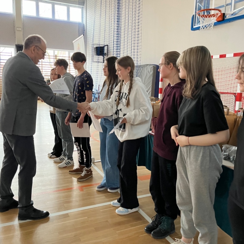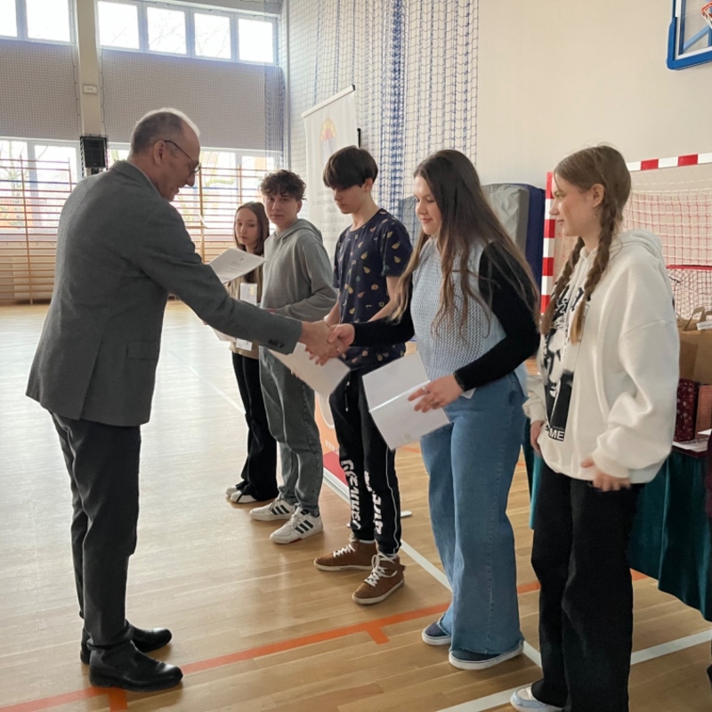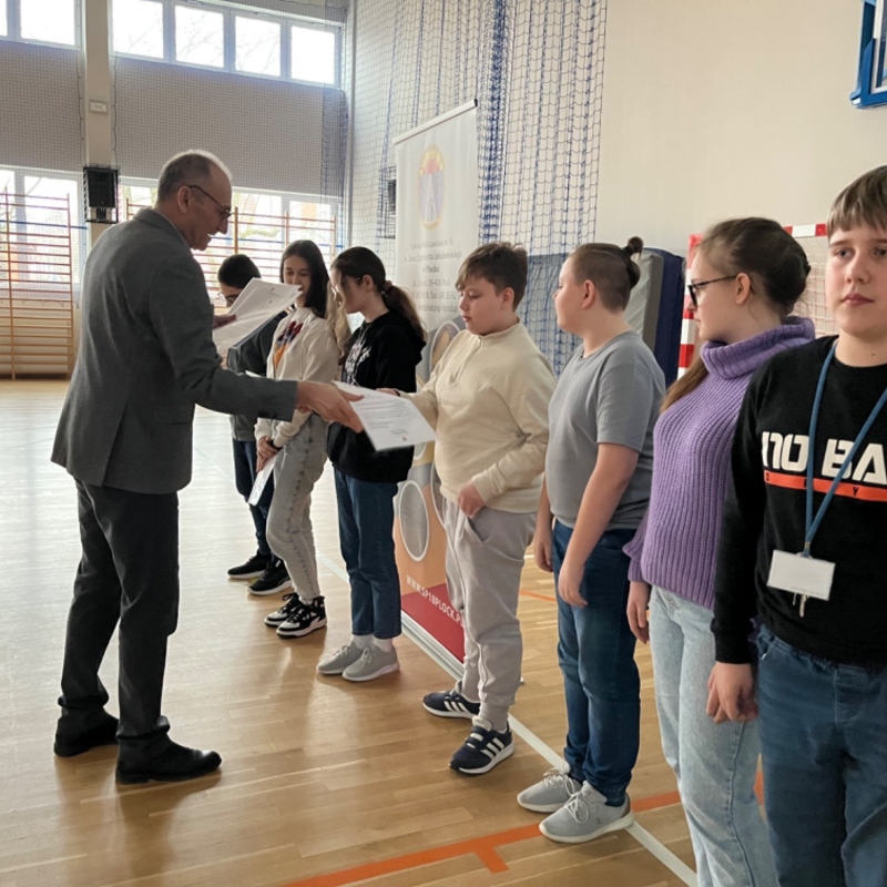 Gromkie brawa otrzymał także Nataniel Kołodziejski z klasy 8 b, który brał udział w etapie wojewódzkim konkursu przedmiotowego z języka niemieckiego i 2 marca w Warszawie walczył o tytuł laureata. 14 marca będziemy mocno trzymać kciuki za Weronikę Konczalską z klasy 8e, która także będzie konkurowała o tytuł laureatki w etapie wojewódzkim konkursu przedmiotowego z biologii.