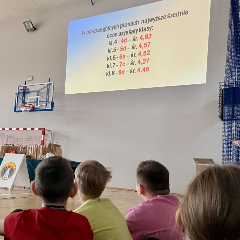 3 marca 2023 społeczność Osiemnastki zebrała się w sali gimnastycznej na uroczystym podsumowaniu pierwszego półrocza. Pan dyrektor odczytał i wręczył listy gratulacyjne uczniom, którzy osiągnęli najwyższe noty w nauce i sporcie. Jesteśmy bardzo dumni z wielu zdolnych i ambitnych osób. Podziwiamy ich zaangażowanie, pracowitość i ciągłą chęć rozwoju swoich umiejętności.