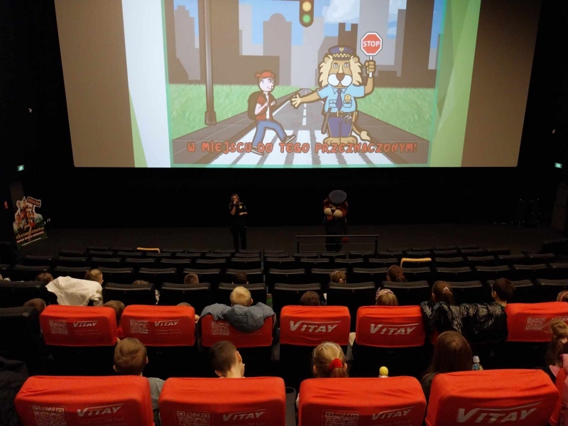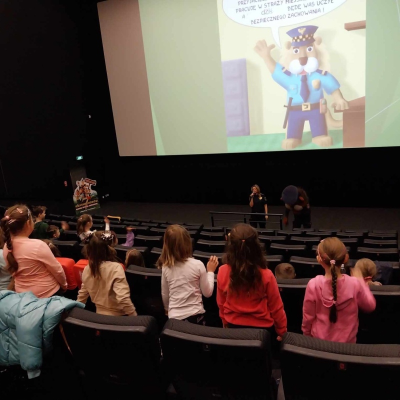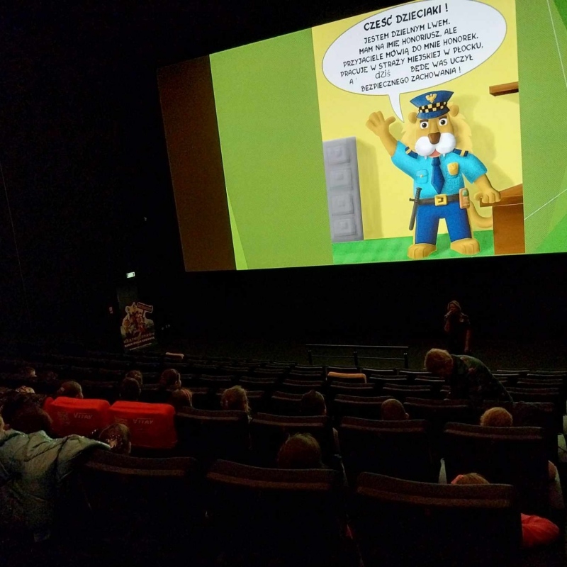 6 listopada w Kinie Przedwiośnie w Płocku, Uczniowie klasy 1a i 1b uczestniczyli z spotkaniu z Lwem Honorkiem w ramach programu profilaktyczno – edukacyjnego realizowanego przez Zespół Profilaktyki Straży Miejskiej w Płocku – „Bezpieczna droga do szkoły”. Dzieci poznały zagrożenia, jakie mogą je spotkać w drodze do szkoły – zarówno podczas poruszania się po drodze, ale również ze strony nieznanych im osób. Brały udział w scenkach, w których ćwiczyły zachowania i reakcje na przedstawione im sytuacje. Nauczyły się również korzystać z numerów alarmowych i udzielać niezbędnych informacji. Po spotkaniu z Lwem Honorkiem, dzieci obejrzały film na motywach powieści wspaniałego pedagoga i nauczyciela Janusza Korczaka - „Kajtek Czarodziej”. Emocje związane ze spotkaniem z Lwem Honorkiem i po obejrzeniu filmu pełnego magii towarzyszyły Naszym Uczniom przez całą drogę powrotną do szkoły. Na szczęście pogoda dopisała i mogliśmy podziwiać jesienne pejzaże.