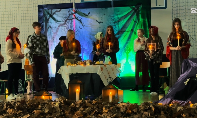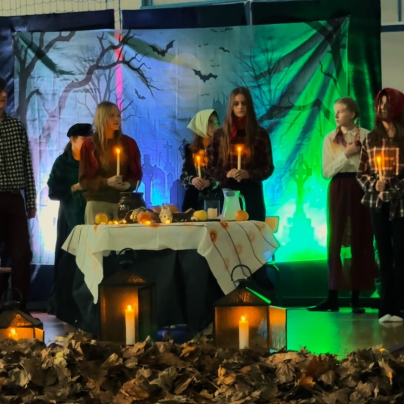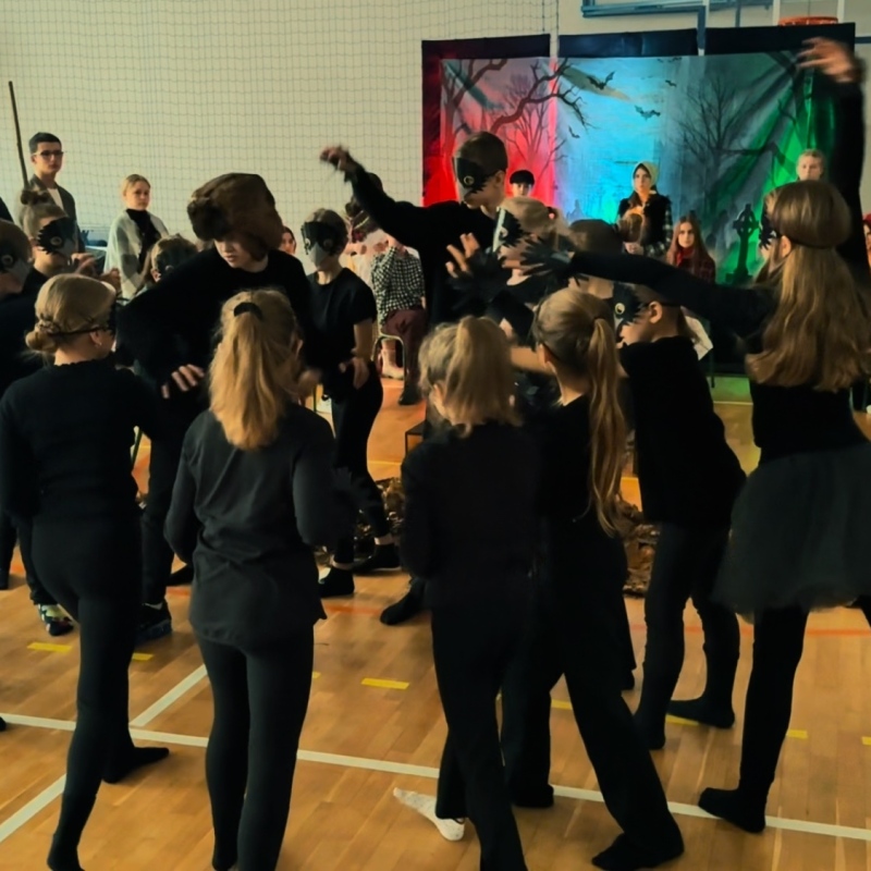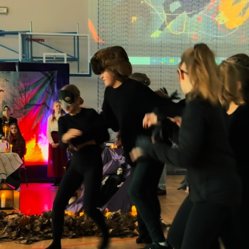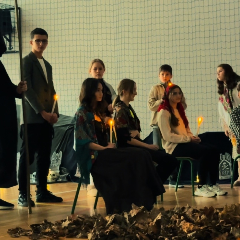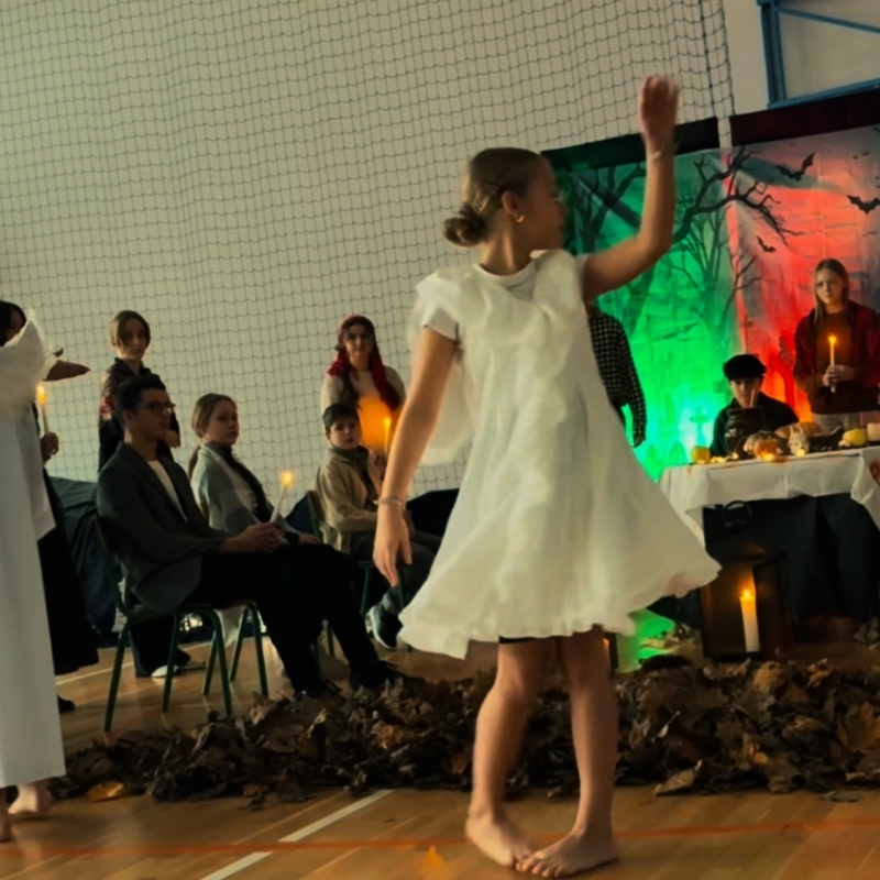 Nasza szkoła na chwilę przeniosła się w świat tajemnicy, grozy i dawnych obrzędów. Szkolne koło teatralne wystawiło „Dziady część II” Adama Mickiewicza – dramat, który od pokoleń porusza wyobraźnię i zmusza do refleksji. Spektakl obejrzały klasy 6, 7 i 8, a sala wypełniła się atmosferą nastrojowej ciemności, migotliwego światła świec oraz niepokojących dźwięków, które wprowadzały widzów w rytm staropolskiego misterium.