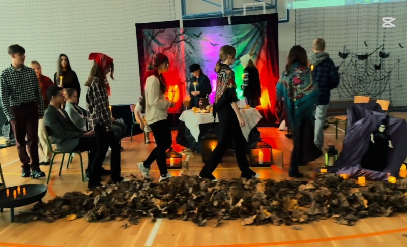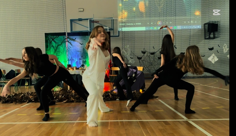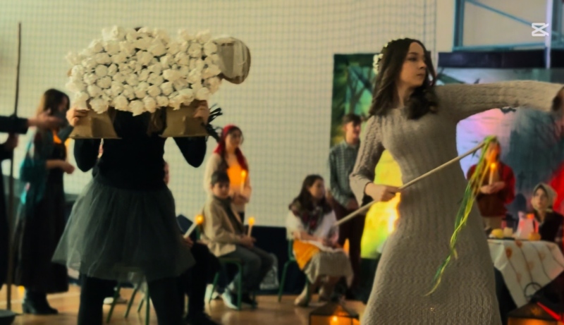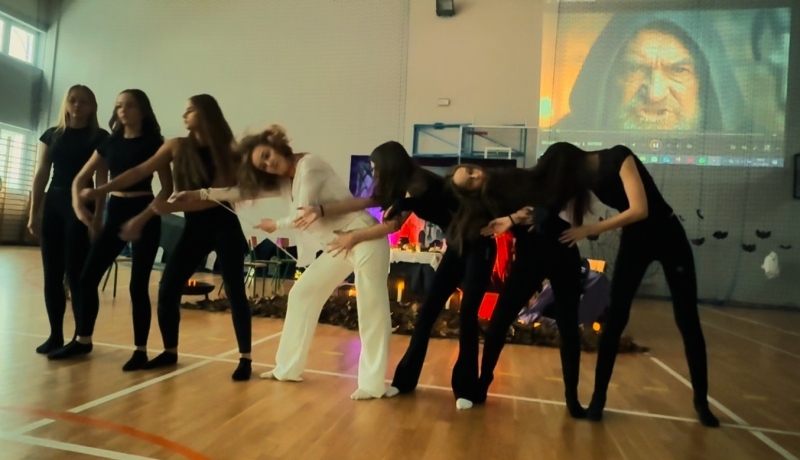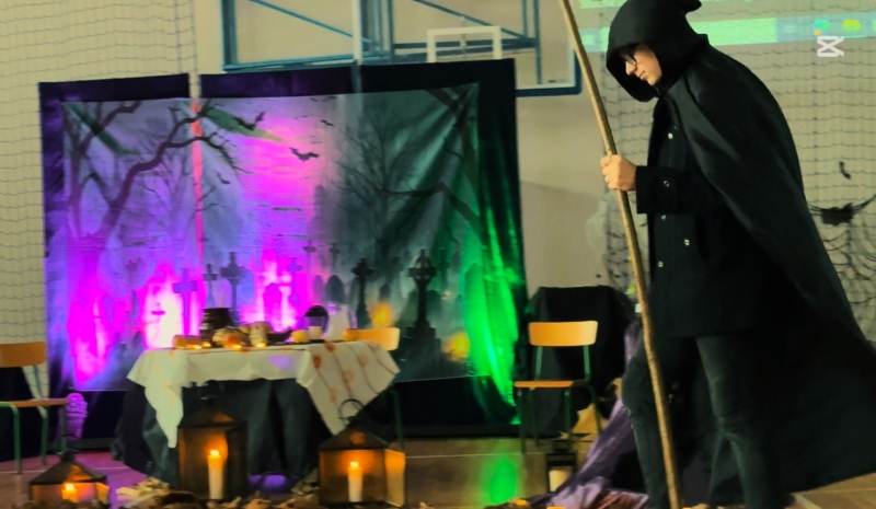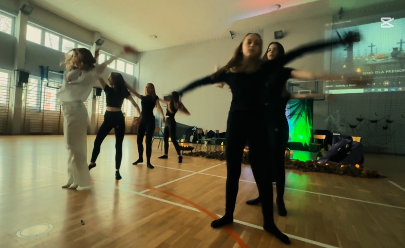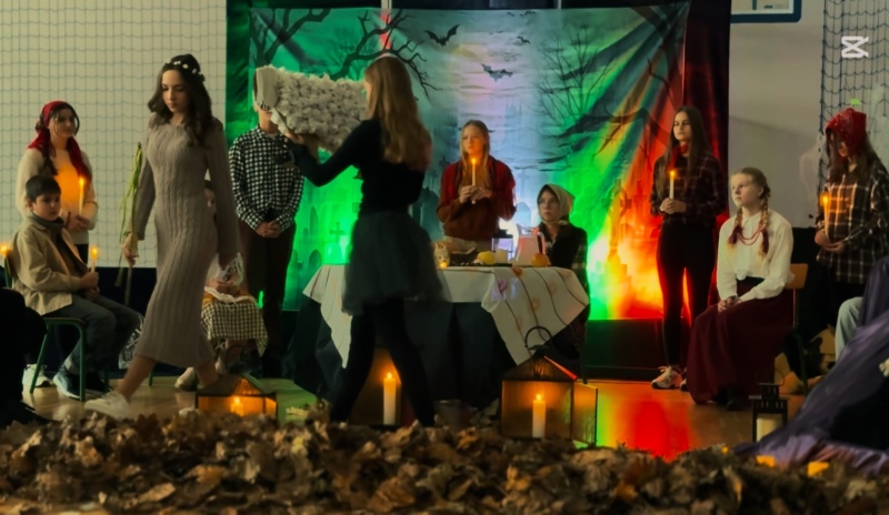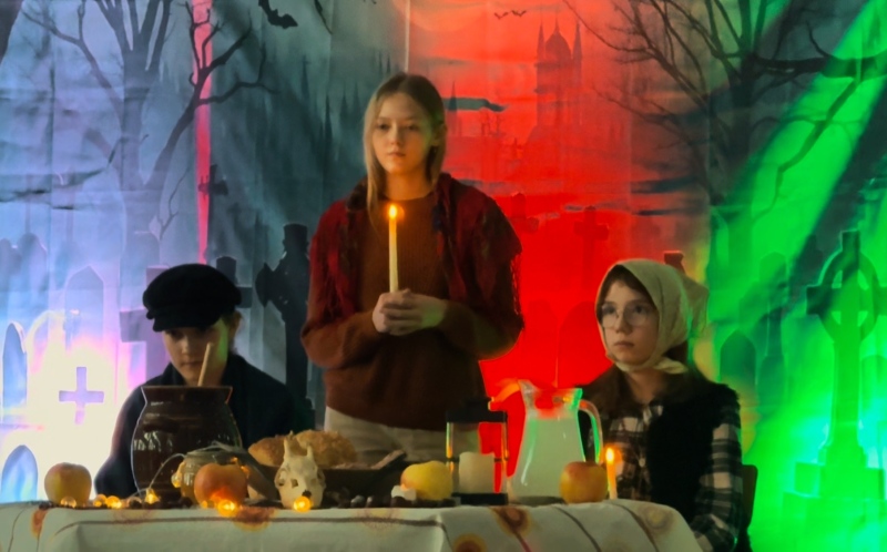 Widzowie z zapartym tchem obserwowali, jak szkolna scena zamienia się w cmentarne miejsce obrzędu, a każdy kolejny epizod odsłaniał kolejną tajemnicę świata zmarłych. Dzięki starannie przygotowanym kostiumom, grze świateł oraz sugestywnej narracji spektakl zyskał wyjątkowo mroczny, przejmujący charakter.