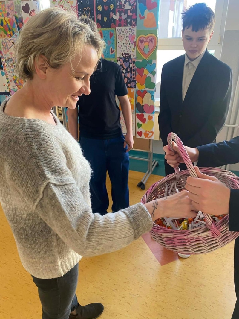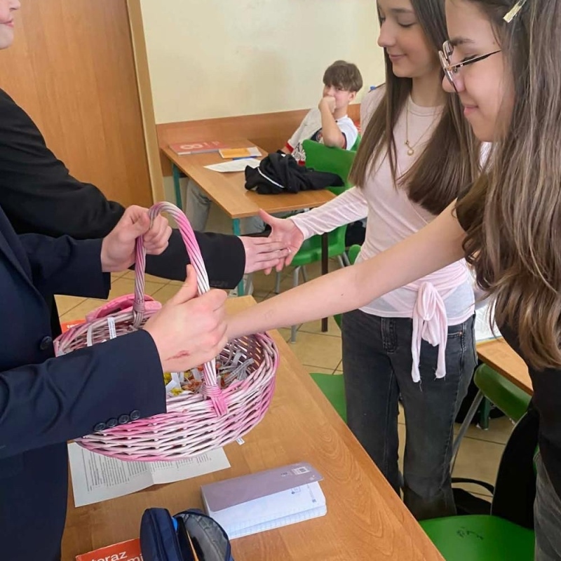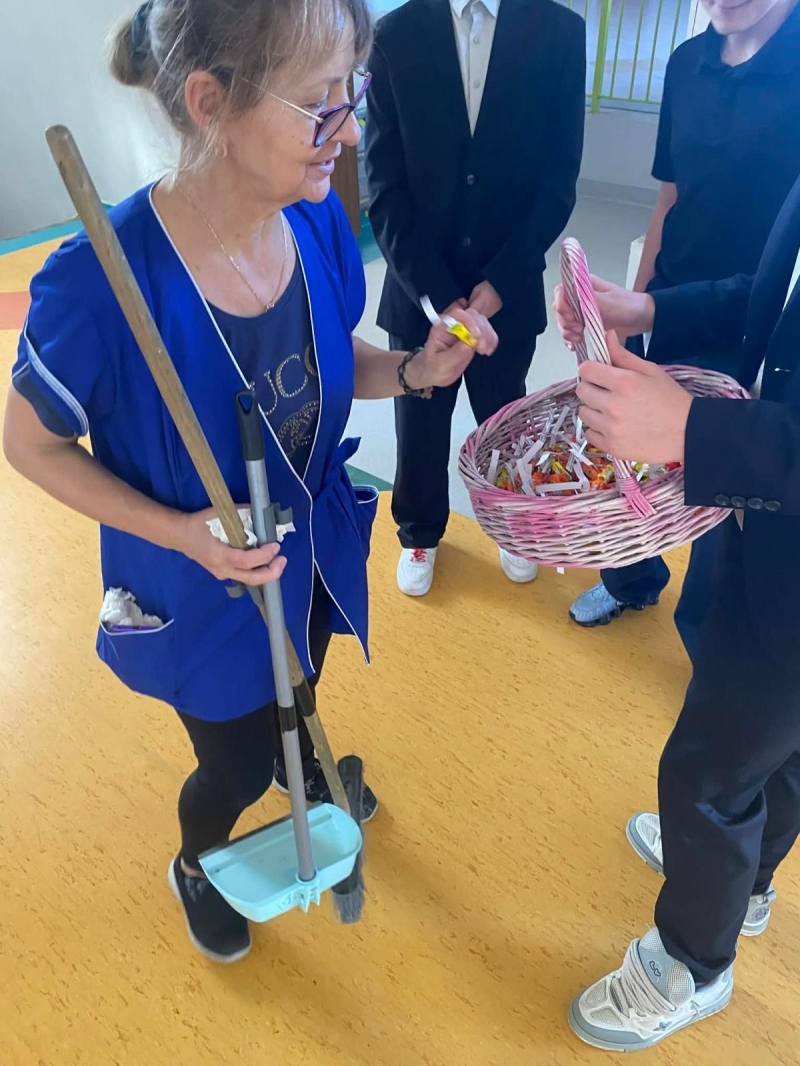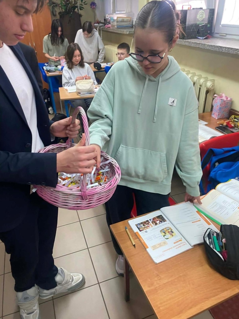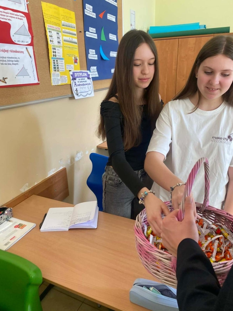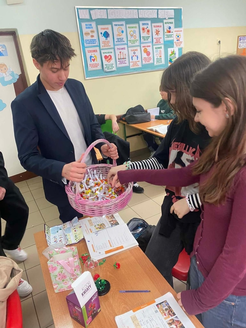 Po jej zakończeniu uczniowie wyruszyli do szkolnych sal, gdzie złożyli życzenia wszystkim Paniom i Koleżankom. Nie zabrakło również słodkich niespodzianek, które wywołały wiele uśmiechów i sprawiły, że w całej szkole zapanowała wyjątkowo miła, świąteczna atmosfera.
