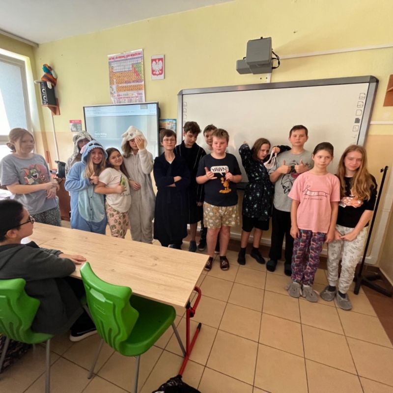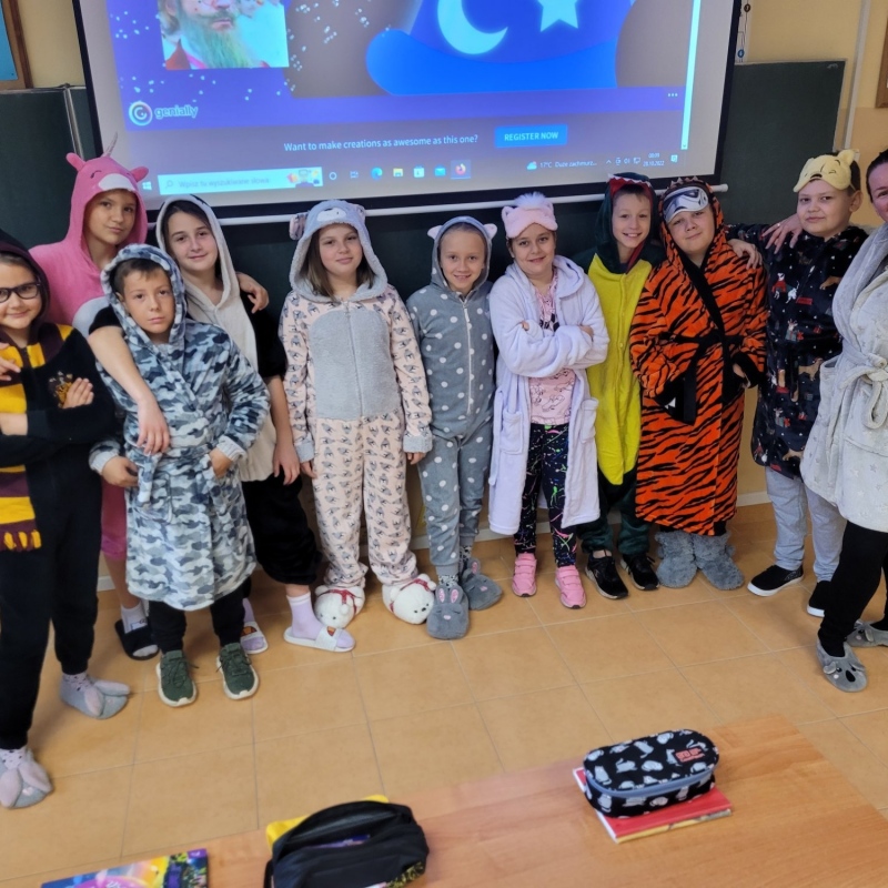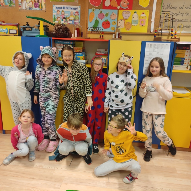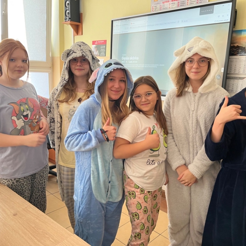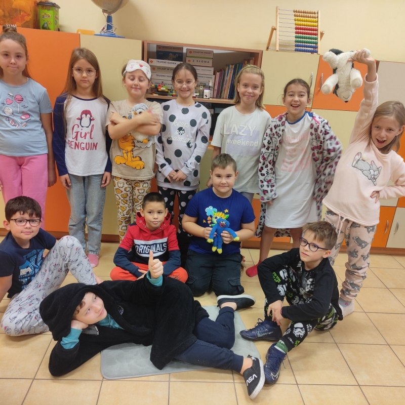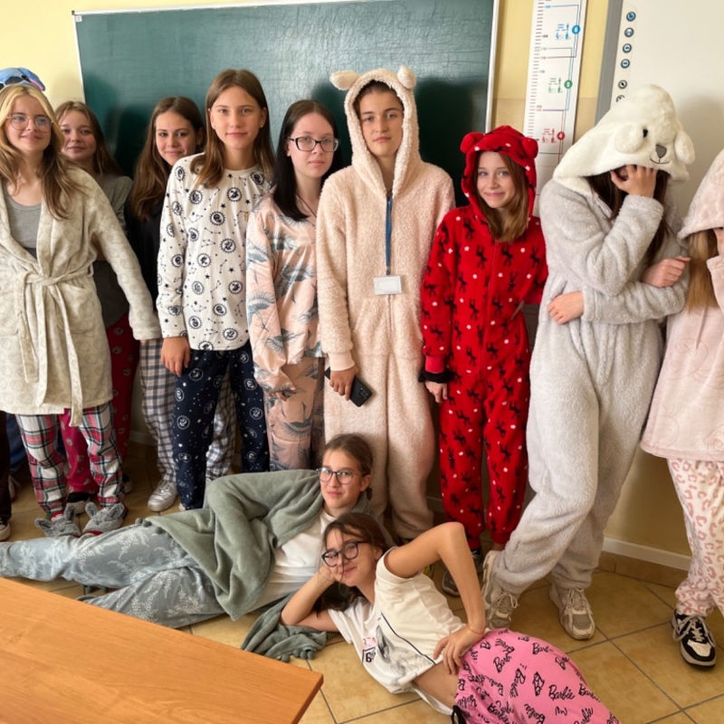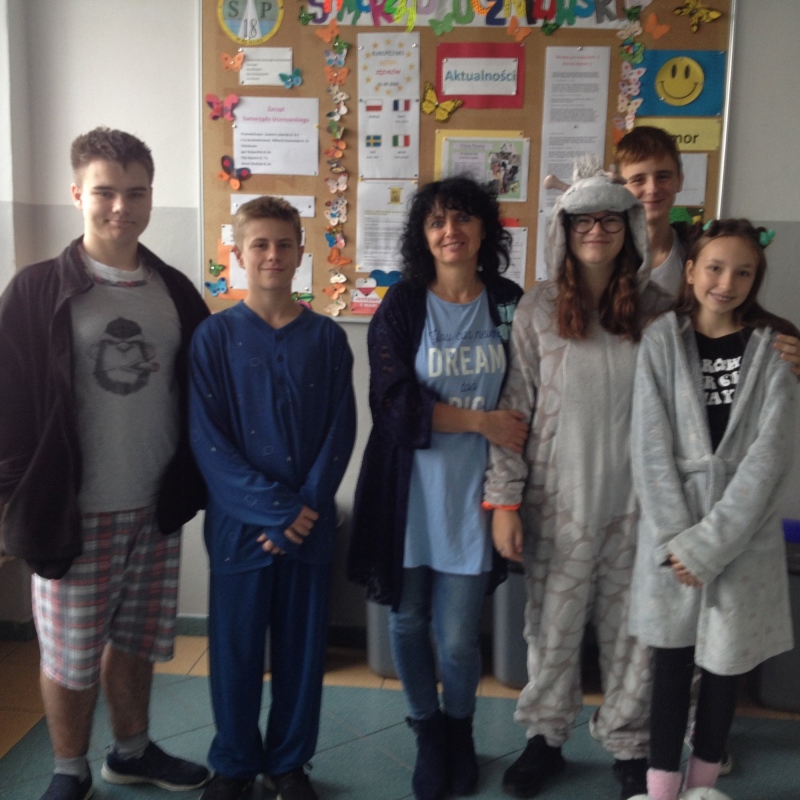 28 października Samorząd Uczniowski ogłosił dniem w piżamie :) Tego dnia szkoła zamieniła się w sypialnię, w której każdy mógł choć na chwilę poczuć się jak w domu. Kolorowe piżamki i szlafroczki, ciekawe nakrycia głowy i cieplutkie kapciuszki wywoływały u każdego uśmiech na twarzy i wprowadzały miłą atmosferę. Gratulujemy ciekawych pomysłów :)