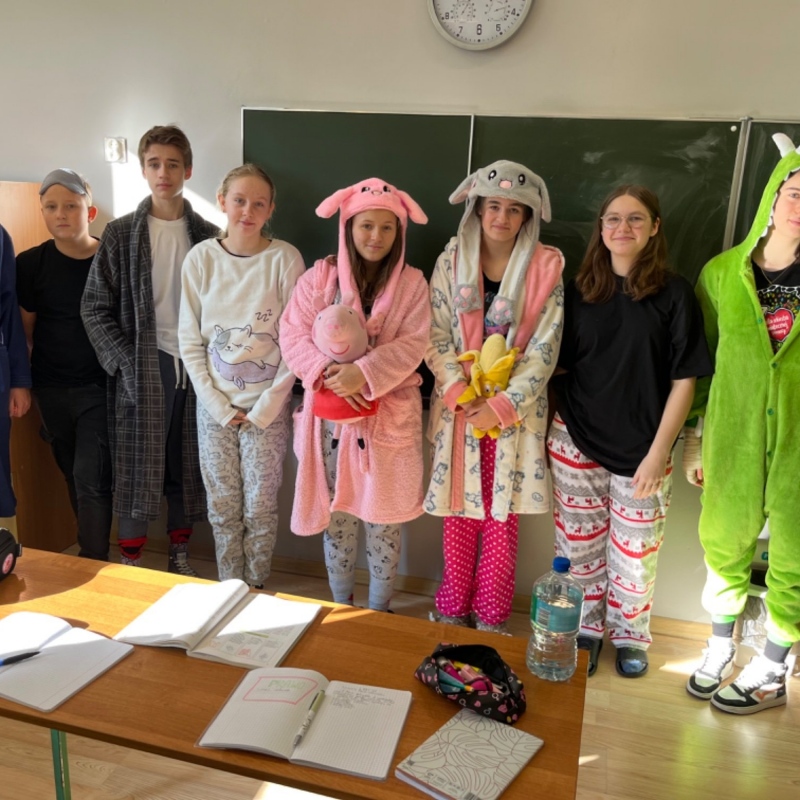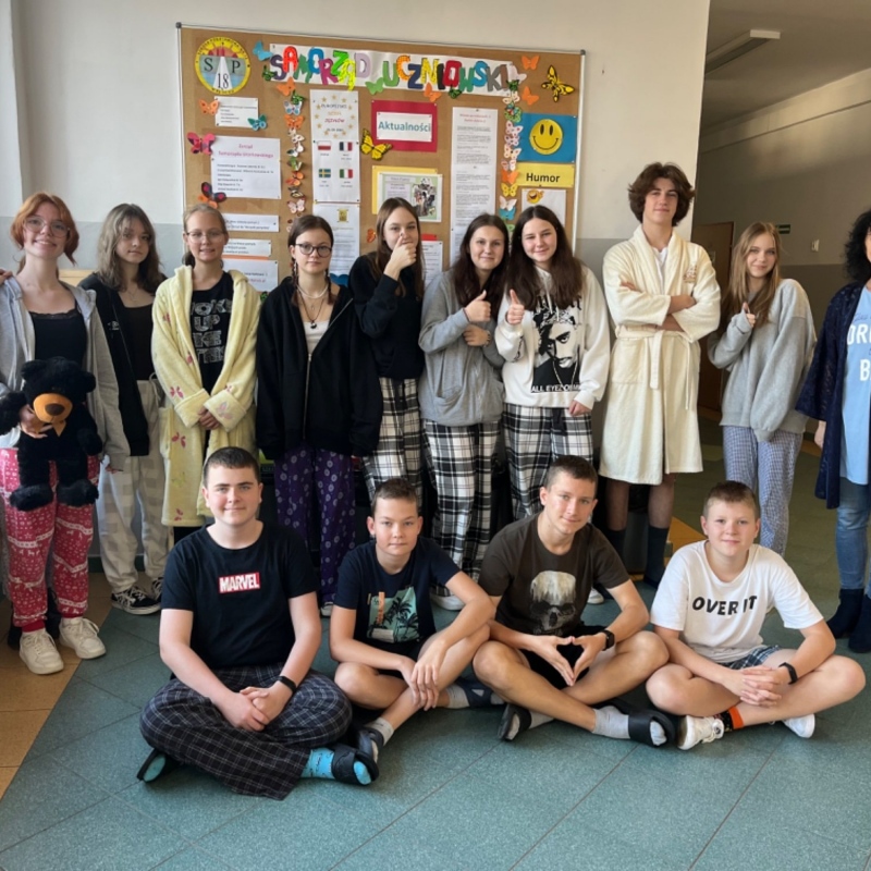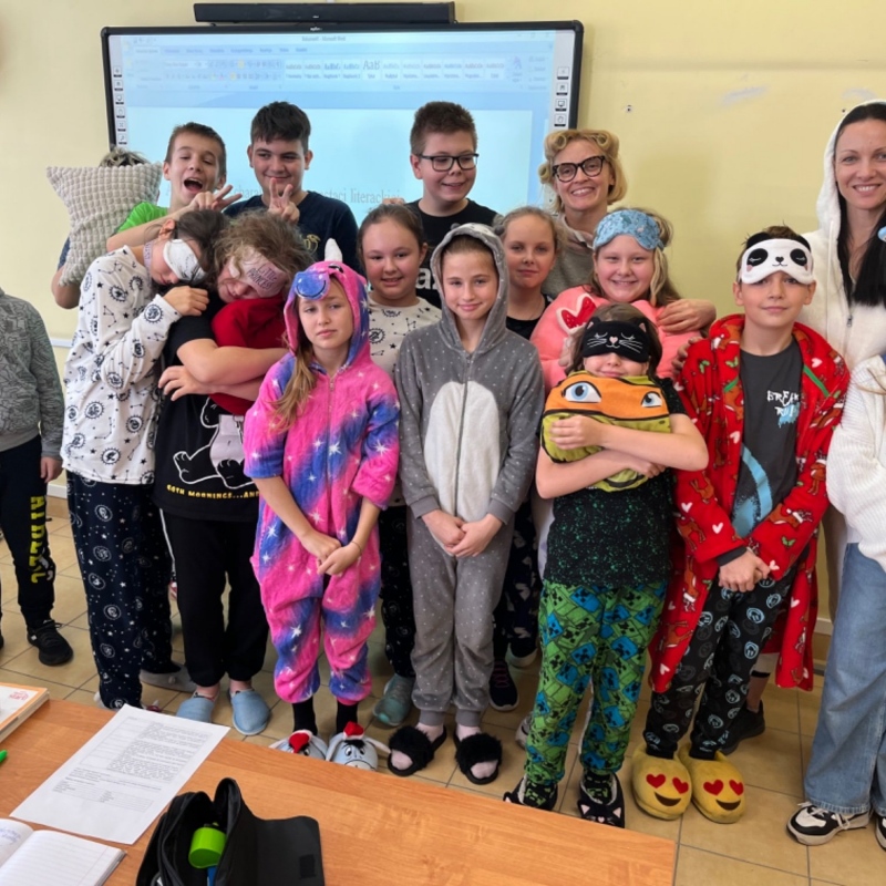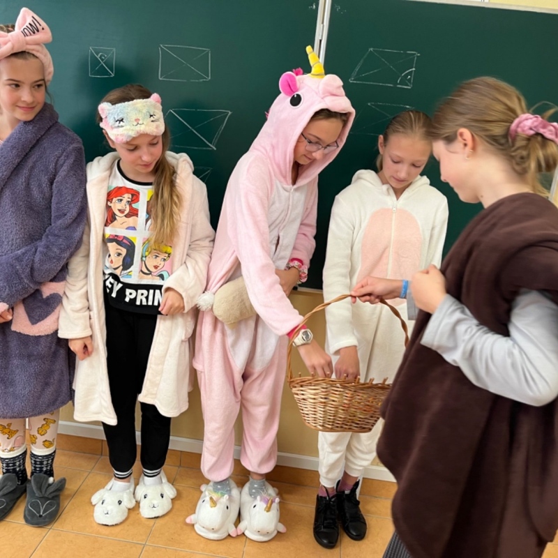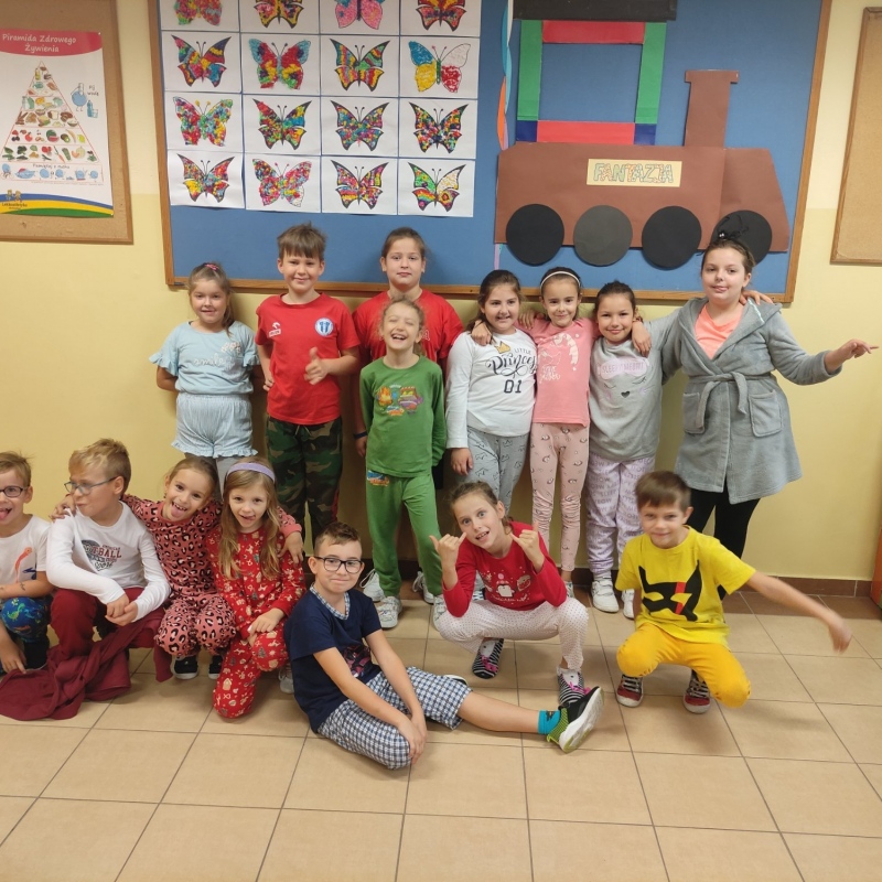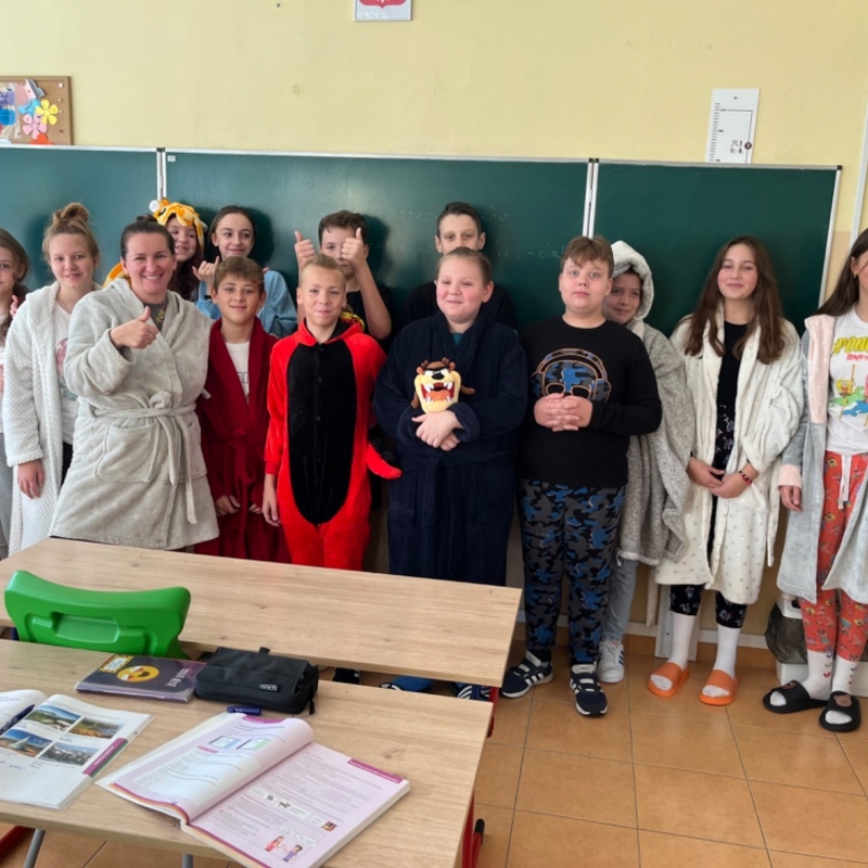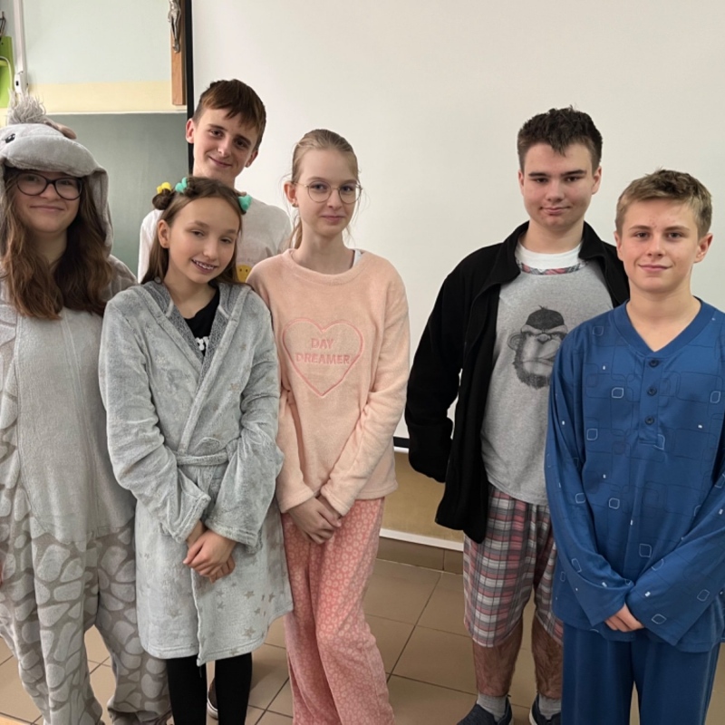 28 października Samorząd Uczniowski ogłosił dniem w piżamie :) Tego dnia szkoła zamieniła się w sypialnię, w której każdy mógł choć na chwilę poczuć się jak w domu. Kolorowe piżamki i szlafroczki, ciekawe nakrycia głowy i cieplutkie kapciuszki wywoływały u każdego uśmiech na twarzy i wprowadzały miłą atmosferę. Gratulujemy ciekawych pomysłów :)