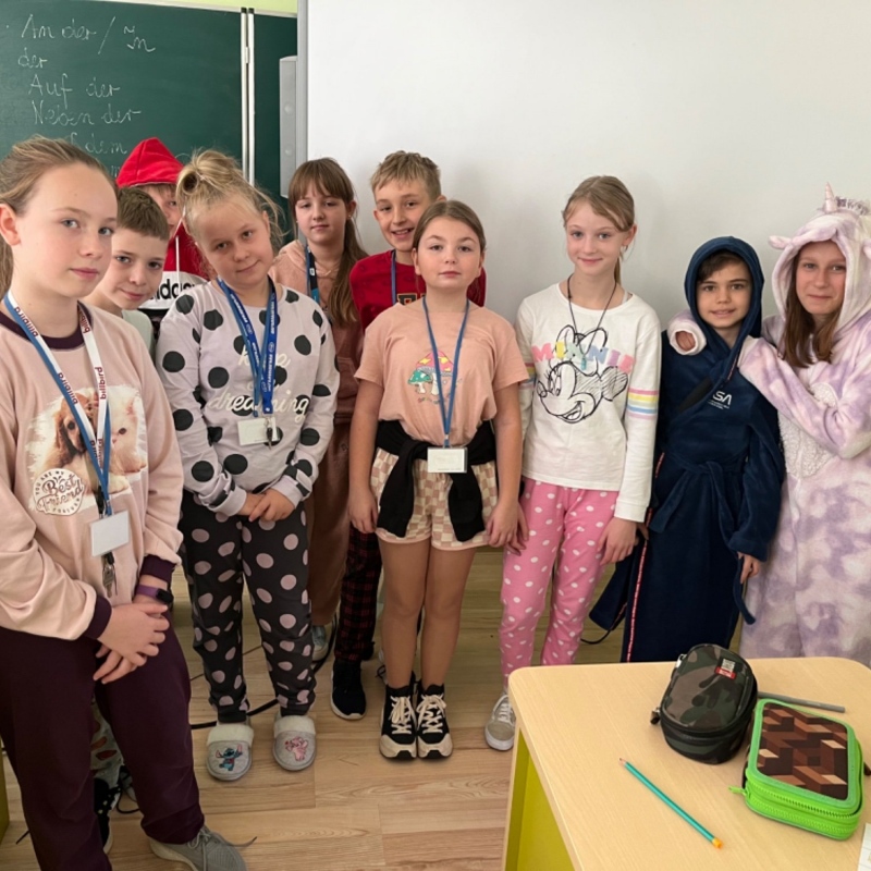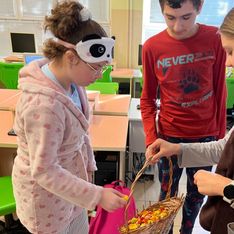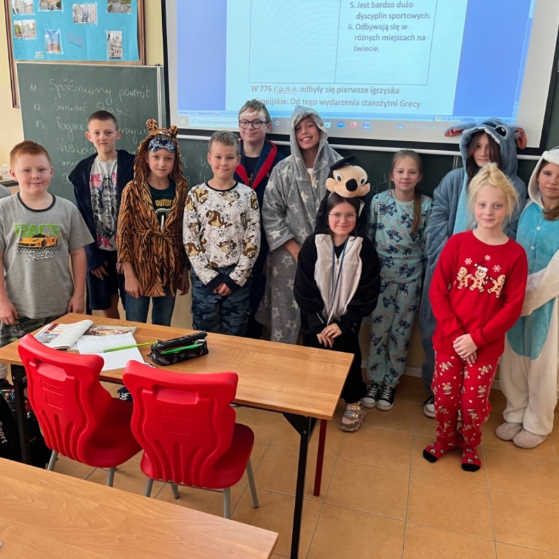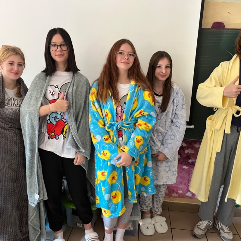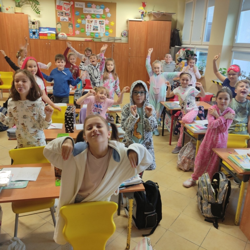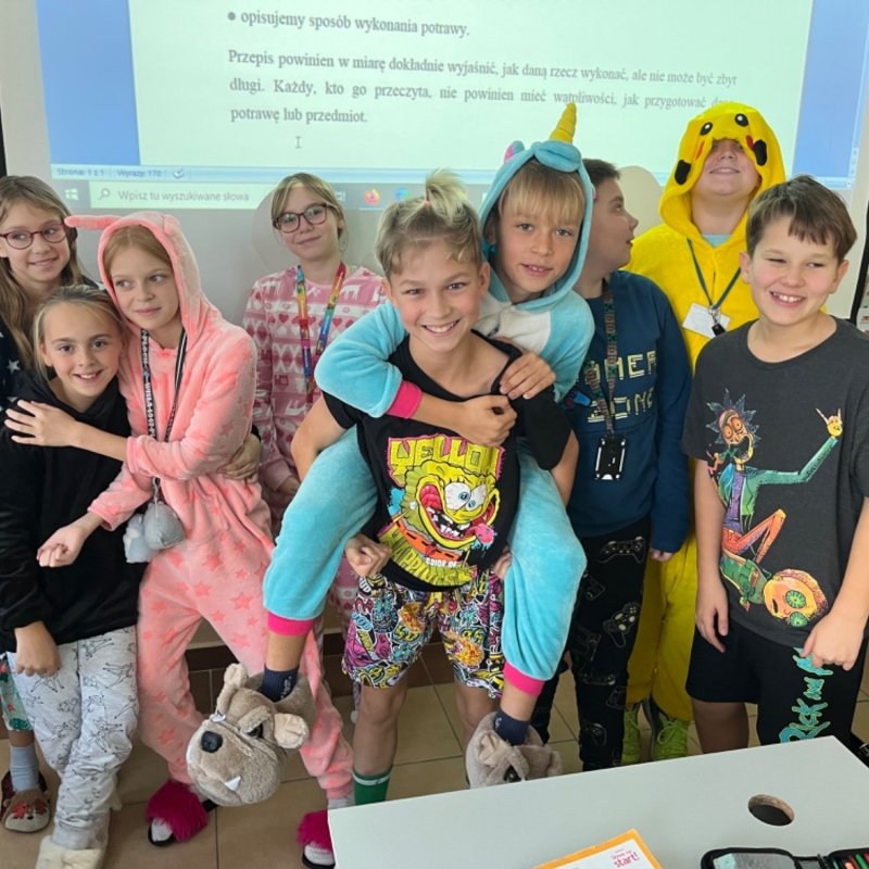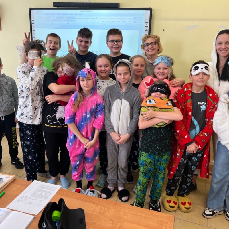 28 października Samorząd Uczniowski ogłosił dniem w piżamie :) Tego dnia szkoła zamieniła się w sypialnię, w której każdy mógł choć na chwilę poczuć się jak w domu. Kolorowe piżamki i szlafroczki, ciekawe nakrycia głowy i cieplutkie kapciuszki wywoływały u każdego uśmiech na twarzy i wprowadzały miłą atmosferę. Gratulujemy ciekawych pomysłów :)