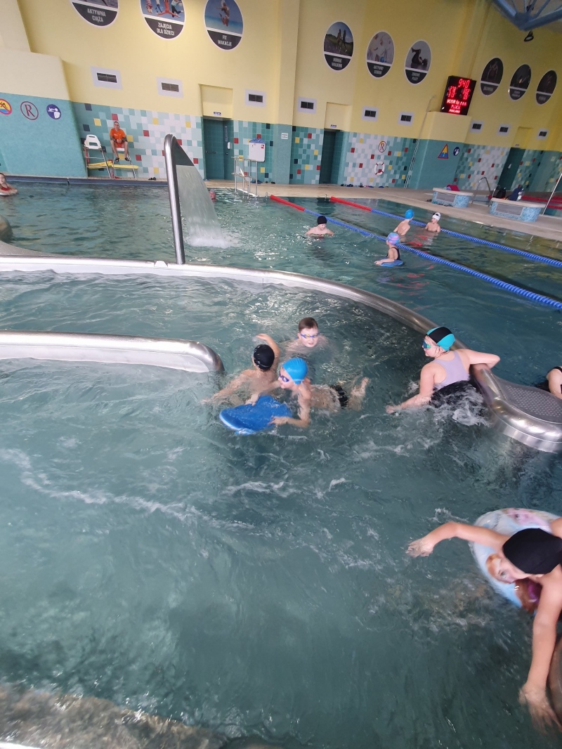Uczniowie naszej szkoły mieli możliwość uczestniczyć w zorganizowanej formie wypoczynku w zajęciach sportowo - rekreacyjnych. Zebrane zostały dwie grupy półkolonii, które prowadziły p. Ewa Kowalik i p. Agnieszka Gawlińska. Uczestnicy w poniedziałek wybrali się do Kina za Rogiem na seans „Lessie wróć” w nowej edycji oraz na długi spacer po naszej pięknej Skarpie. We wtorek i czwartek dzieci spędziły sportowo czas na Pływalni Miejskiej Podolance. W środę w Miejskim Ogrodzie Zoologicznym oprócz zwiedzania i odwiedzania egzotycznych milusińskich nasi uczniowie wzięli udział w lekcji poprowadzonej przez pracownika ZOO. Dzieci wysłuchały ciekawostek na temat różnych zwierząt, a niektóre mogły pogłaskać, dotknąć i zobaczyć bezpośrednio. W piątek odbyły się zajęcia sportowe na sali gimnastycznej, ruchowe zajęcia na siłowni na powietrzu oraz spacer wzdłuż rzeki Wisły. Uczestnicy doskonale się bawili, aktywnie spędzając czas, integrując się i umacniając więzi koleżeńskie.