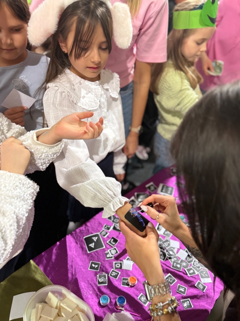 💄Strefa urody przyciągała najmłodszych – kolorowe warkoczyki, brokatowe tatuaże i malowanie twarzy sprawiły mnóstwo radości.