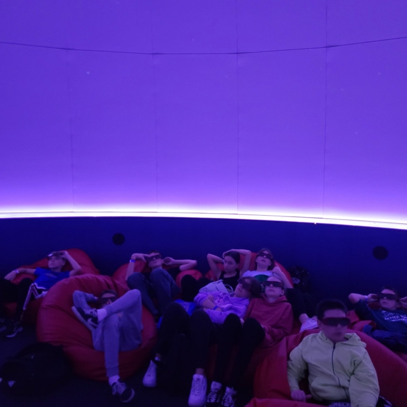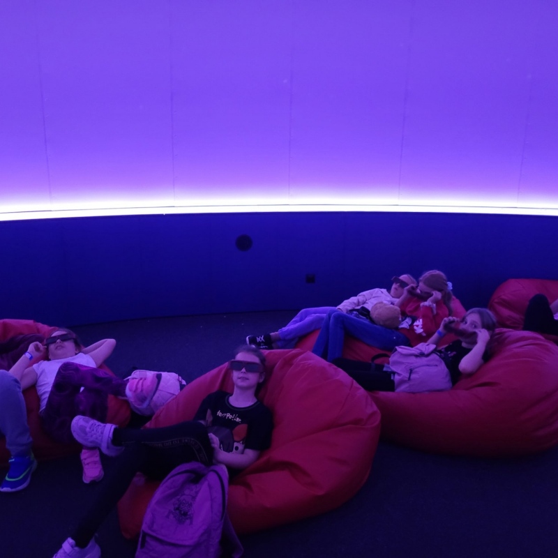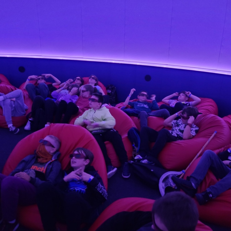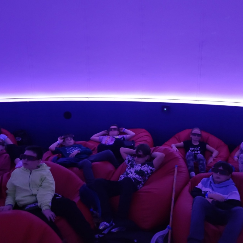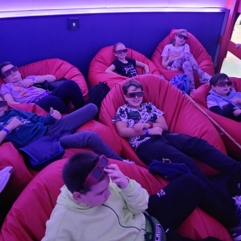 Podczas pobytu w parku rozrywki uczniowie uczestniczyli również w animacji o tematyce związanej ze zmieniającymi się porami roku na kuli ziemskiej - w mandoriańskim kinie sferycznym 3D. Podziwiali seans pt. "Zaczarowany globus".