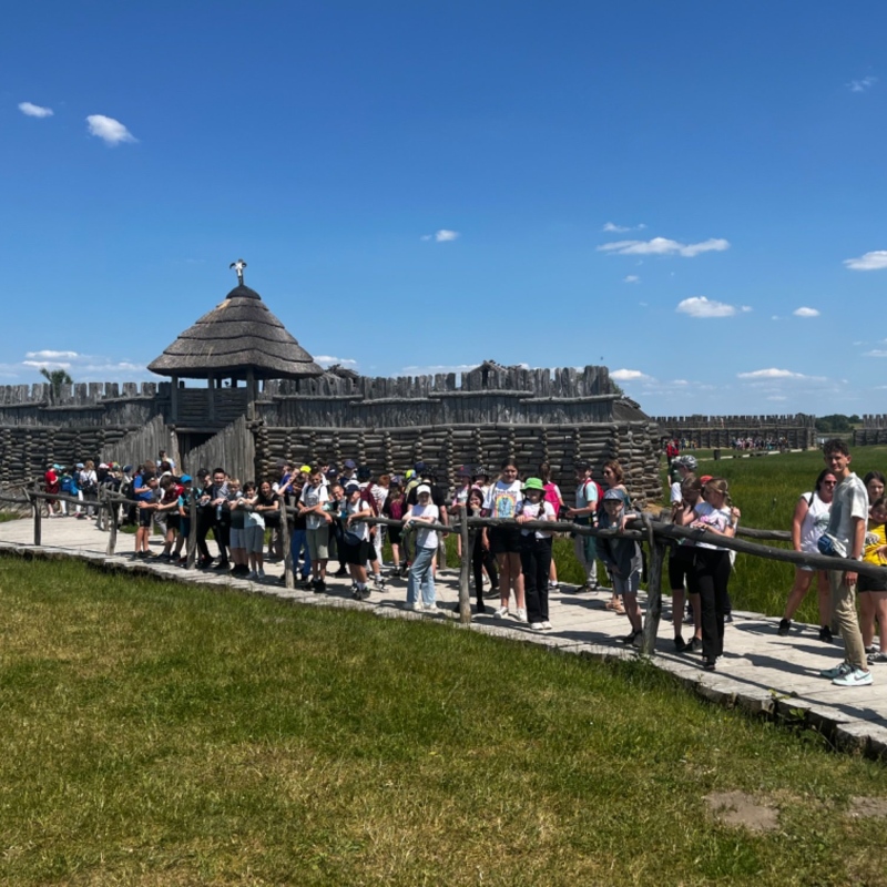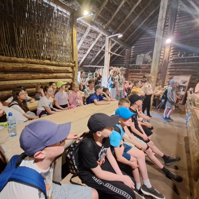 Pierwszym odwiedzonym miejscem była Kruszwica z legendarną Mysią Wieżą. By dotrzeć na szczyt budowli, należało pokonać 114 schodów, ale warto było. Mogliśmy podziwiać niezwykłe widoki- panoramę miasta oraz jeziora Gopło. Przypomnieliśmy sobie także legendę o złym księciu Popielu, którego zjadły myszy. Kolejny przystanek w naszej podróży znajdował się w Biskupinie. Zwiedziliśmy muzeum archeologiczne oraz osadę sprzed 2700 lat, poznaliśmy niezwykłe okoliczności jej odkrycia. W jednej z chat spotkaliśmy garncarza i poznaliśmy tajniki wyrobu naczyń z gliny.