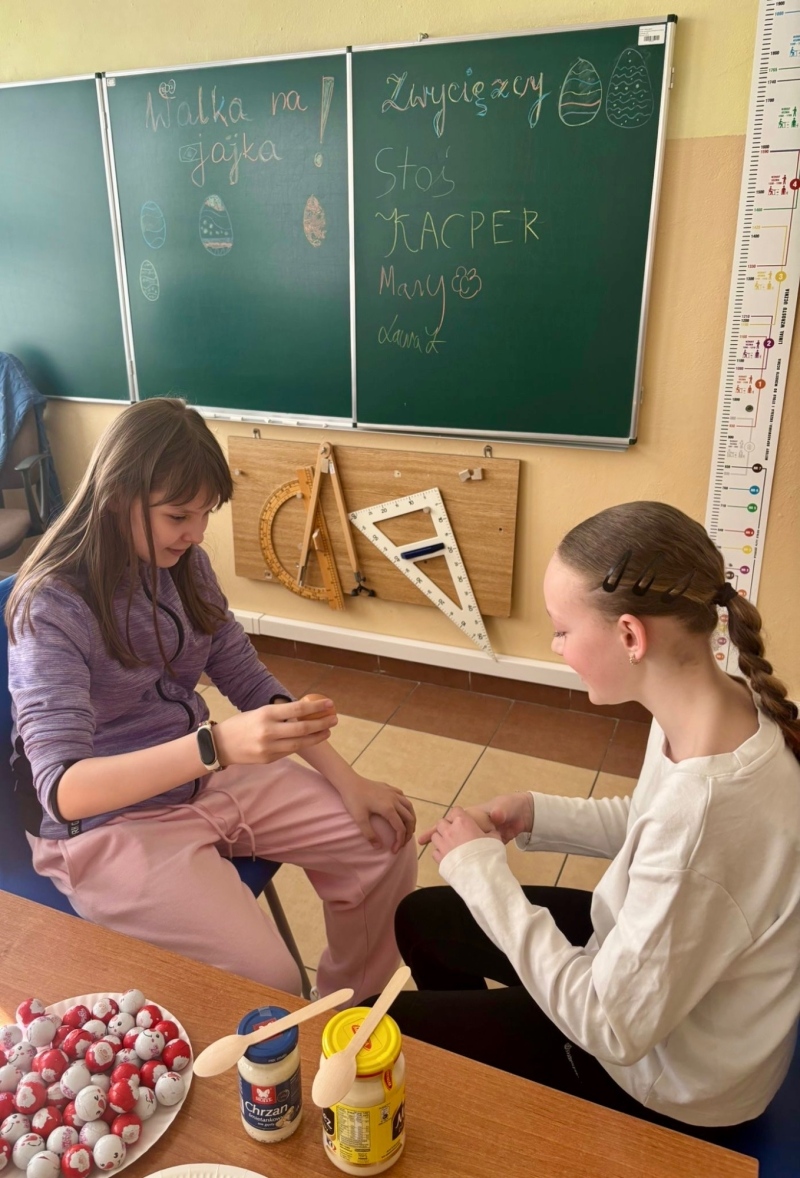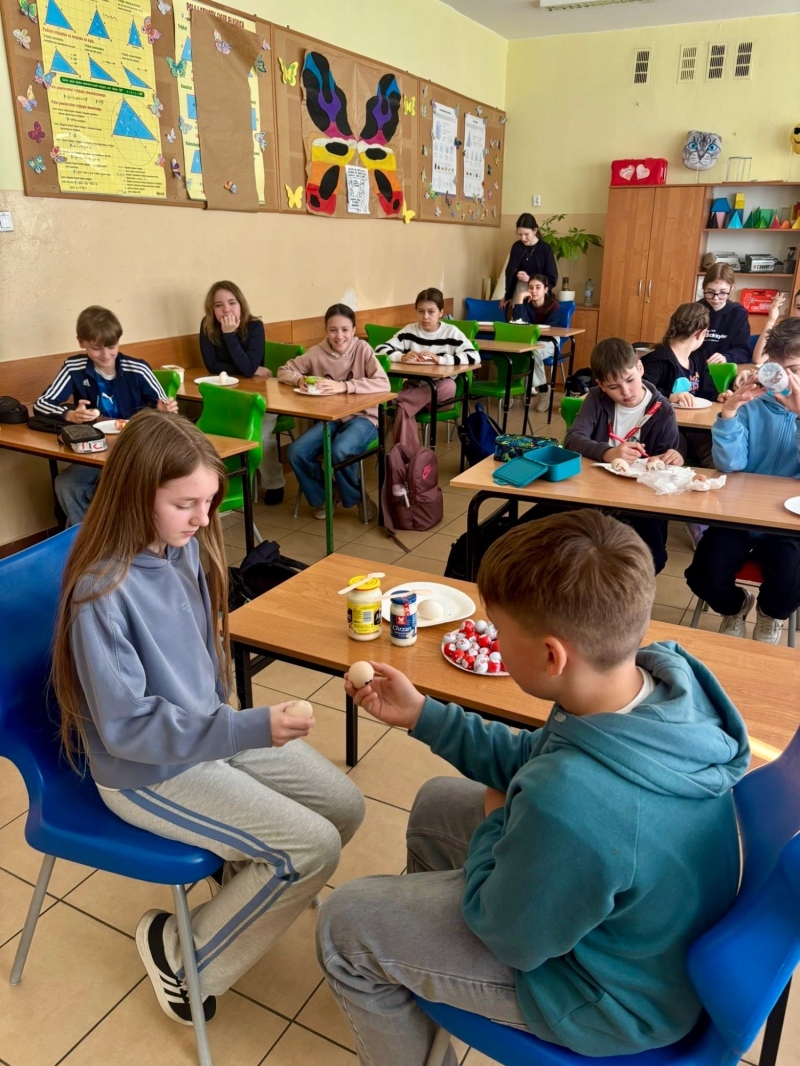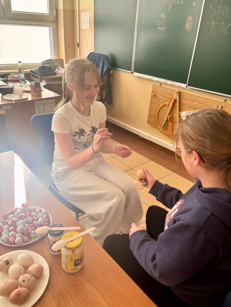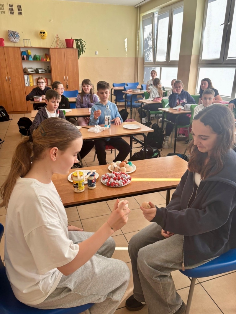 Temat dzisiejszej godziny wychowawczej w kl. 5a "Tradycje wielkanocne". Nie zabrakło walki na jajka, wykonania pisanek i tego co najprzyjemniejsze - zjedzenia jajek 🙂