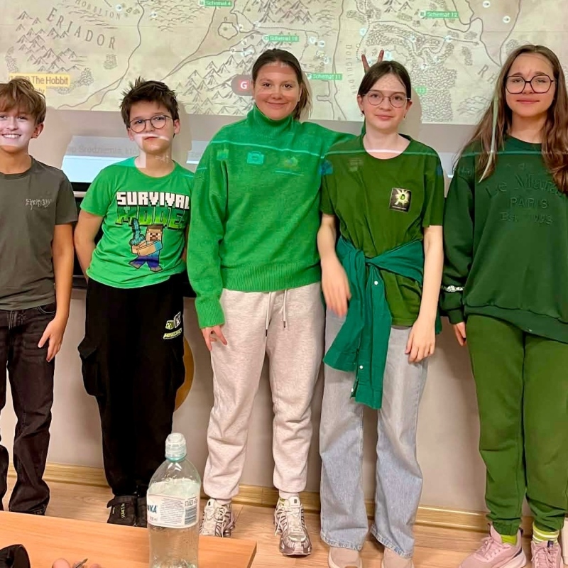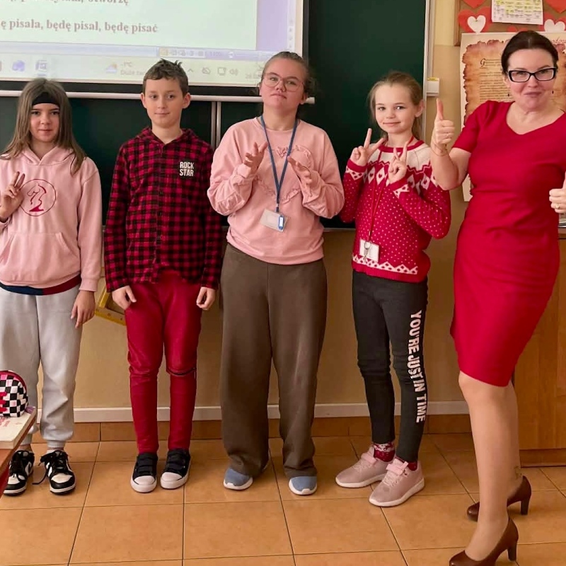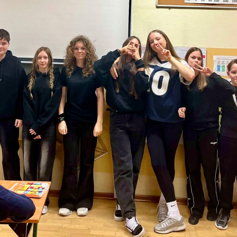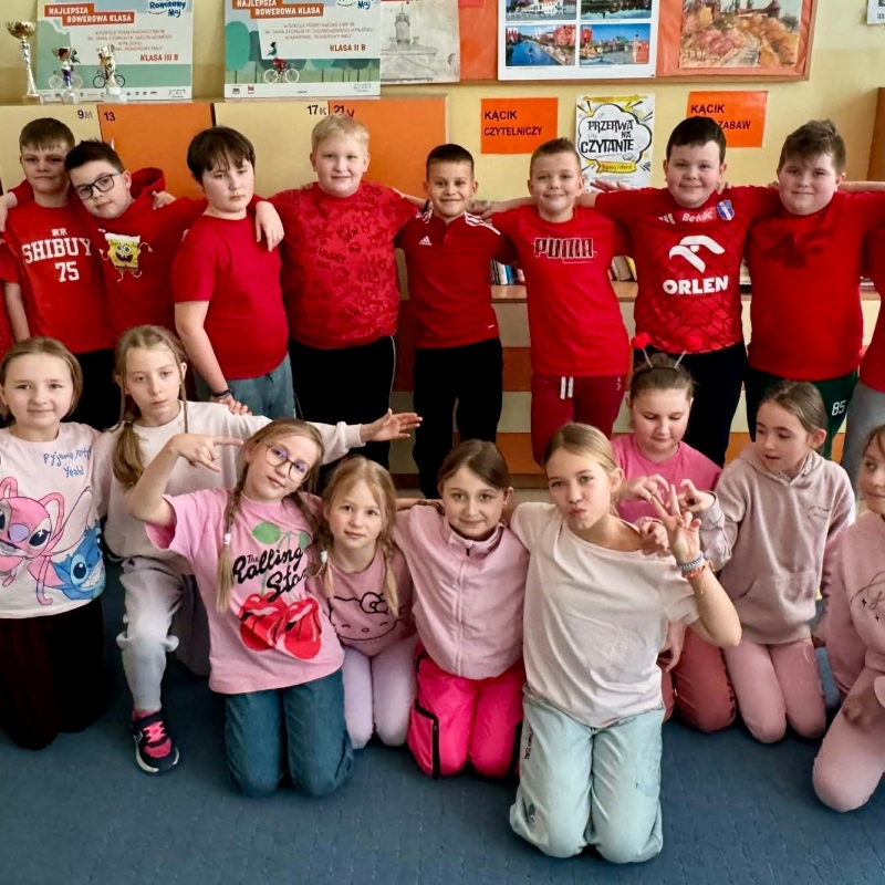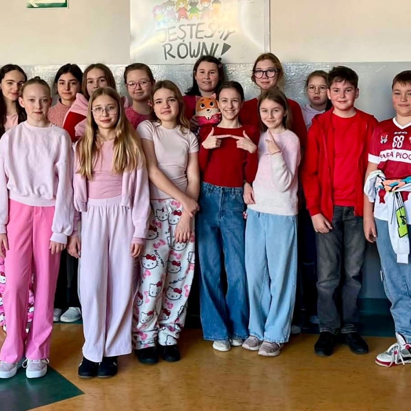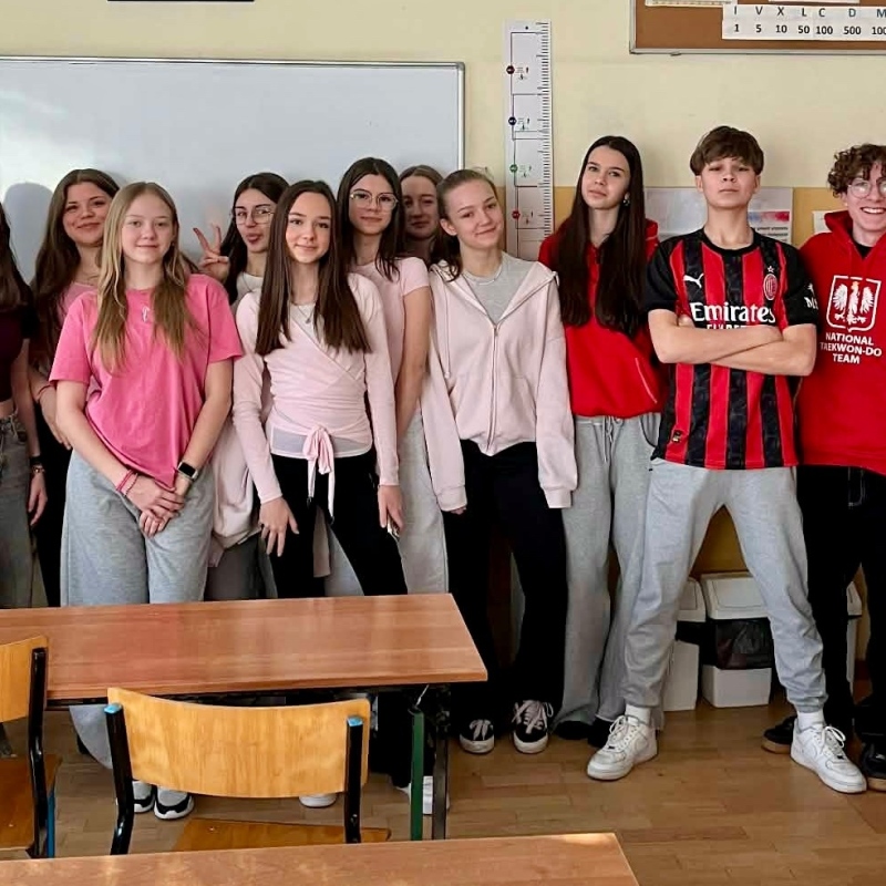 Każdego dnia obowiązywał inny kolor stroju. W poniedziałek korytarze zdominowała elegancka czerń. We wtorek zrobiło się świeżo i wiosennie – królowała zieleń. Środa upłynęła pod znakiem niebieskiego, który wprowadził spokojny, pogodny nastrój. W czwartek zrobiło się naprawdę barwnie – różowo-czerwone stylizacje dodawały wszystkim energii i uśmiechu. Tydzień zakończyliśmy w piątek w bieli, która symbolicznie podkreśliła wspólnotę i szkolną jedność.
