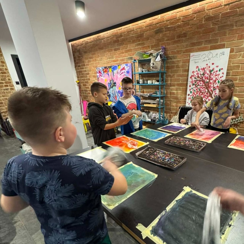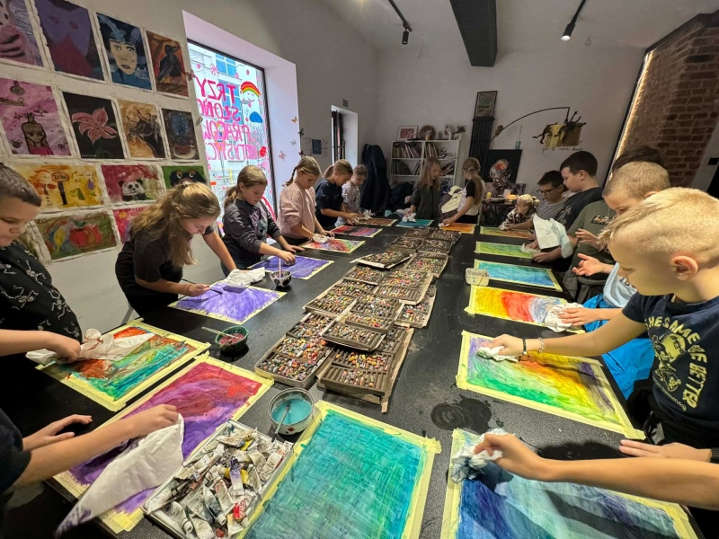 Klasa 3b uczestniczyła w warsztatach w pracowni plastycznej ,,Trzy Słońca”, rozwijające wyobraźnię, pomysłowość i uwagę. Dzieci poznały nowe techniki plastyczne. Prace były niezwykle twórcze i kreatywne ukazujące wiele talentów i zdolności naszych uczniów.