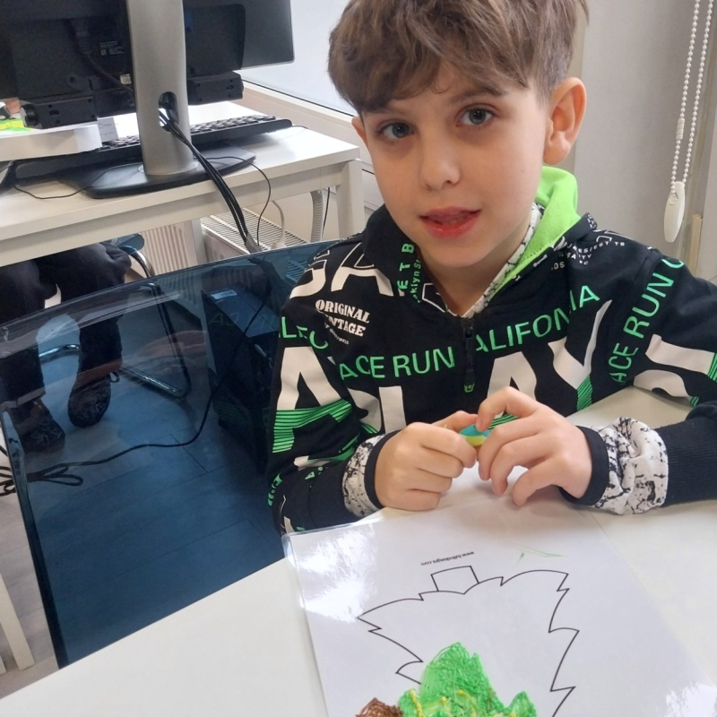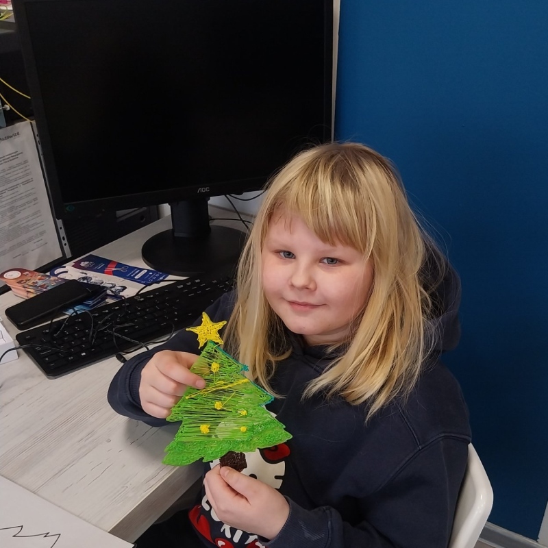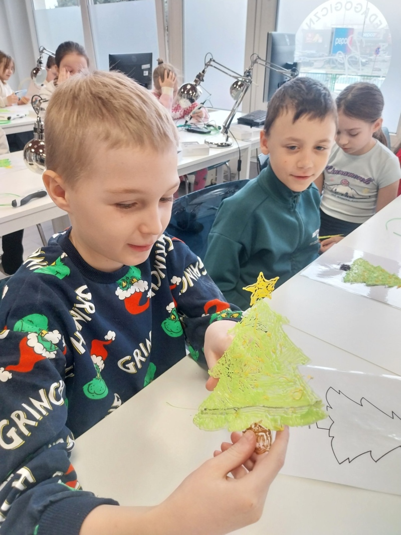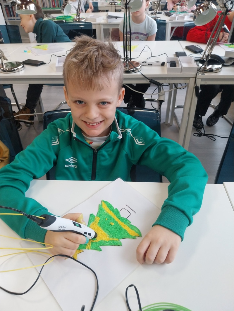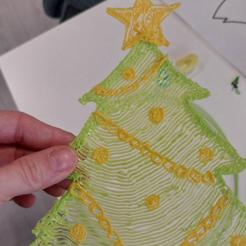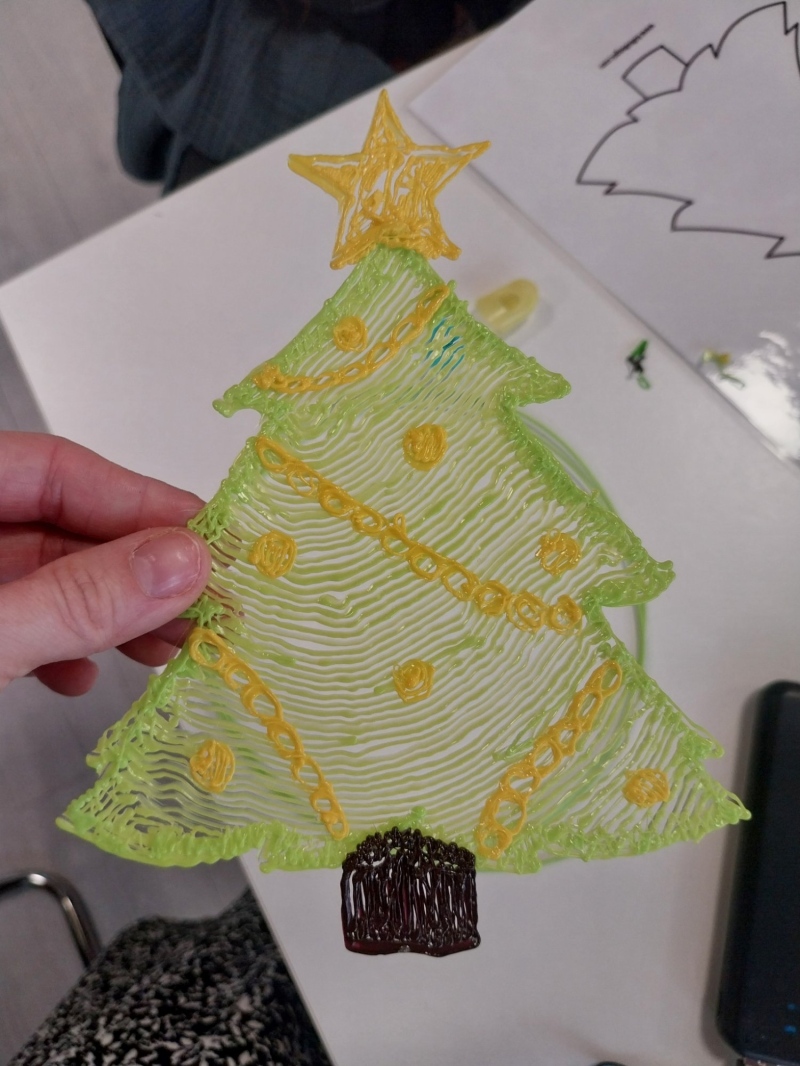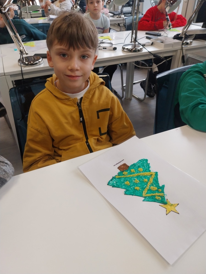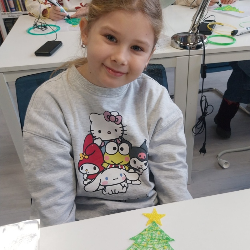 Podczas warsztatów z długopisów 3D, dzieci tworzyły świąteczne choinki na przygotowanych szablonach 🎄✍️