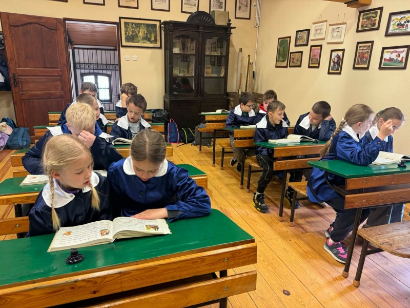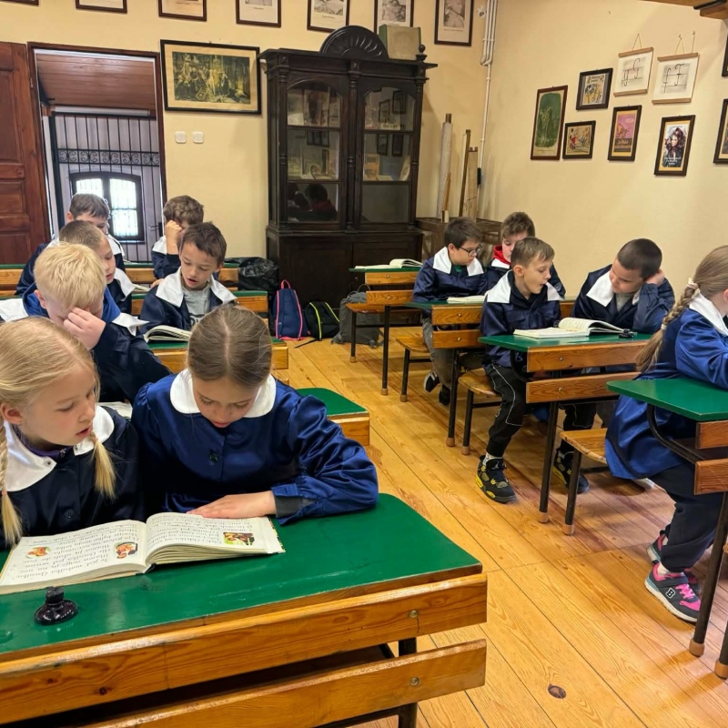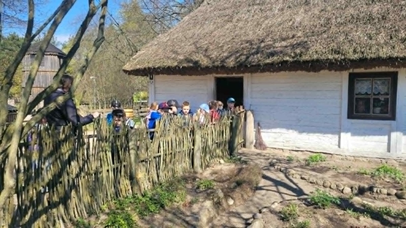 Podczas spaceru malowniczymi ścieżkami dzieci miały możliwość zobaczyć tradycyjne, drewniane chaty kryte strzechą, dawną szkołę, dom młynarza i sołtysa, a także zabytkowy kościół. Uczniowie poznali codzienne życie i pracę naszych przodków.