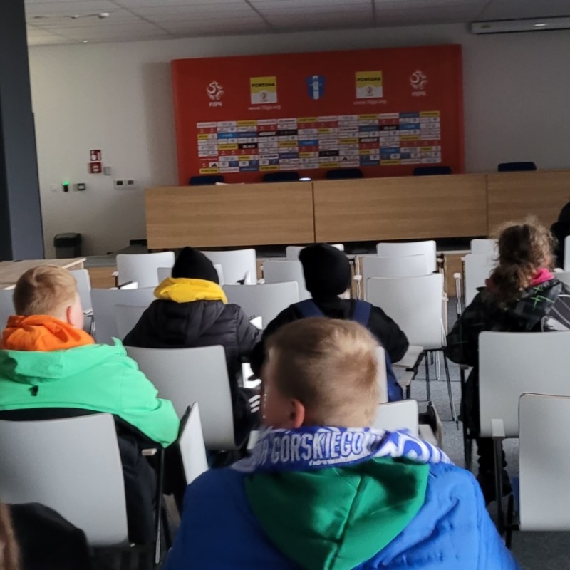 Dnia 21.11.2023r. uczniowie klasy 5b oraz 6a wraz z opiekunami wybrali się na zwiedzanie nowego Stadionu Wisły Płock. Pani, która oprowadzała naszą grupę szkolną, zaprezentowała nam podczas spaceru kondygnacje tej wspaniałej budowli i takie miejsca, jak: trybuna prasowa, loże biznesowe, sektor VIP i strefa sportowa . Mogliśmy tu zobaczyć szatnie drużyn, tunel wyprowadzający piłkarzy na boisko, ławki rezerwowych i salę konferencyjną.